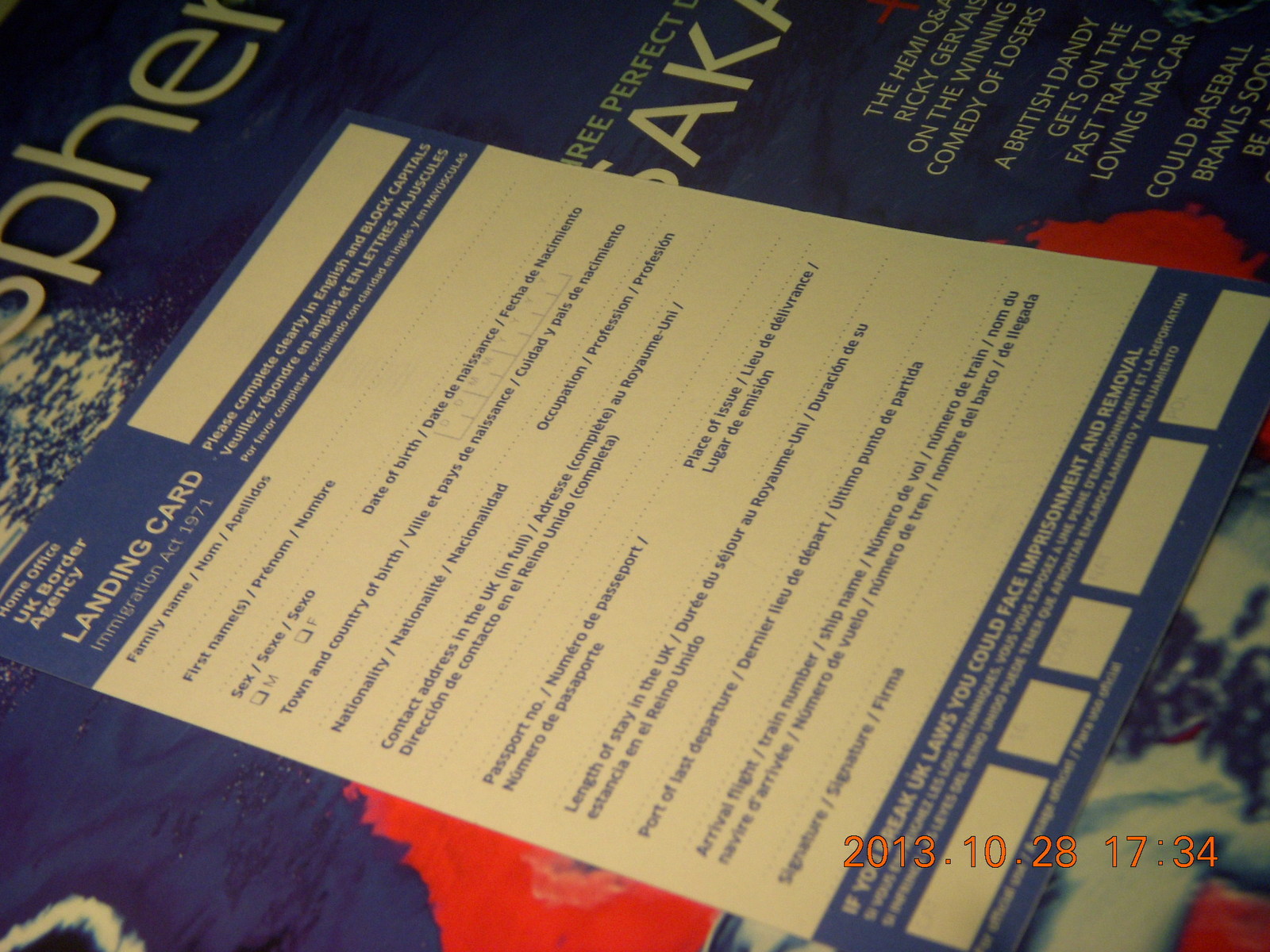 The date on the paper was 2013 November 17,