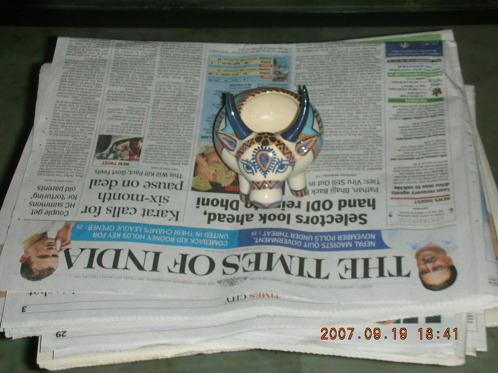 2007 September 20, Thursday, 69l-zv0.jpg * center room in suite, Essel Towers, Gurgaon, India - newspaper