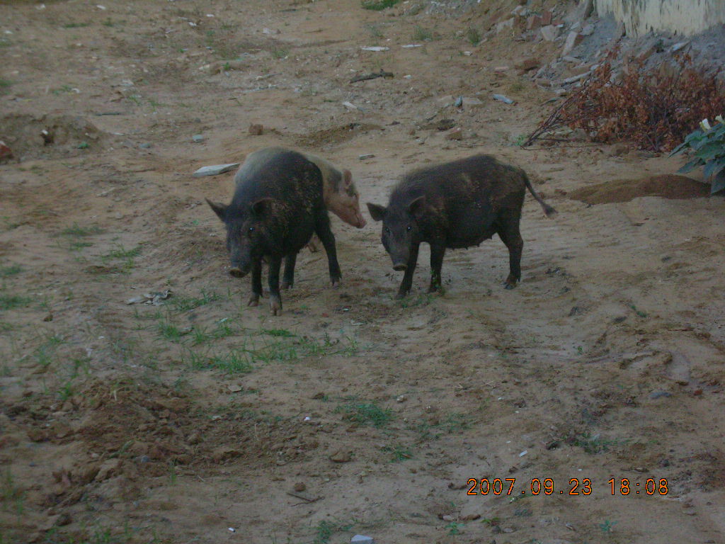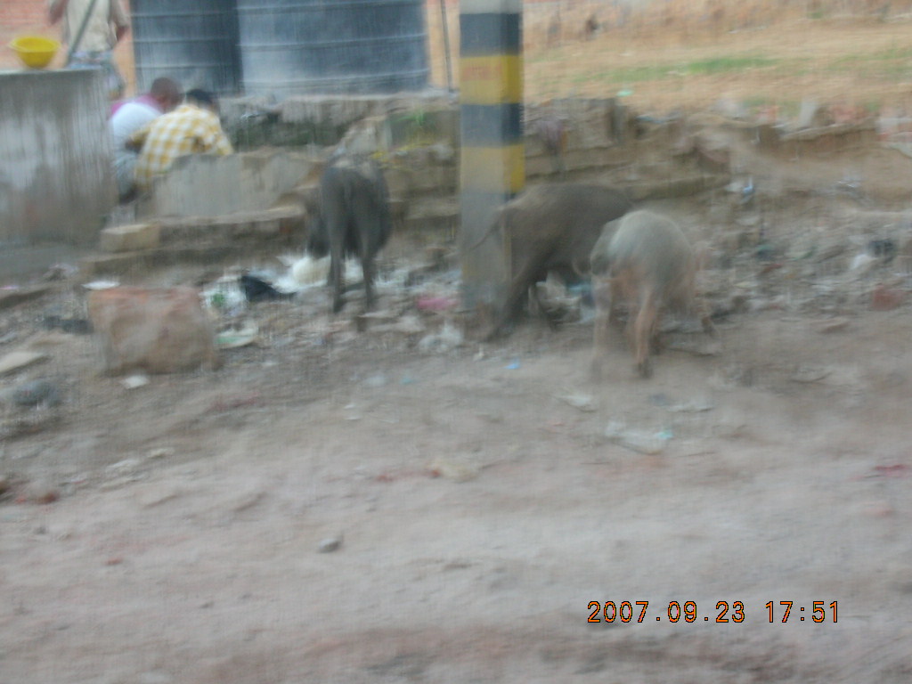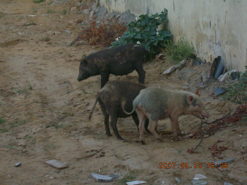 2007 September 26, Wednesday, 69s-4m5.jpg * morning run, Gurgaon, India - pigs