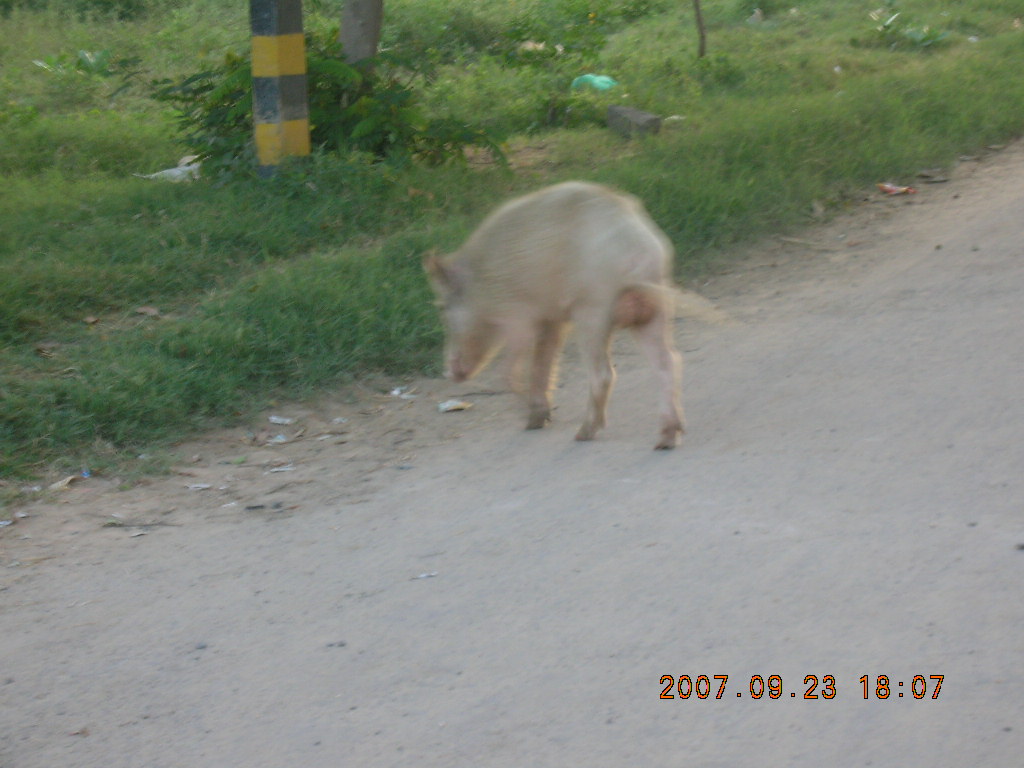 2007 September 26, Wednesday, 69s-4m1.jpg * morning run, Gurgaon, India - pig