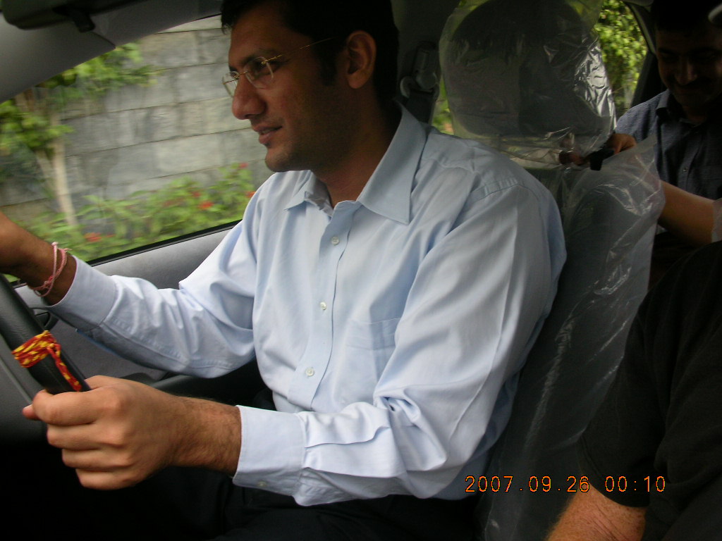 153 69k. Pramod driving his new car