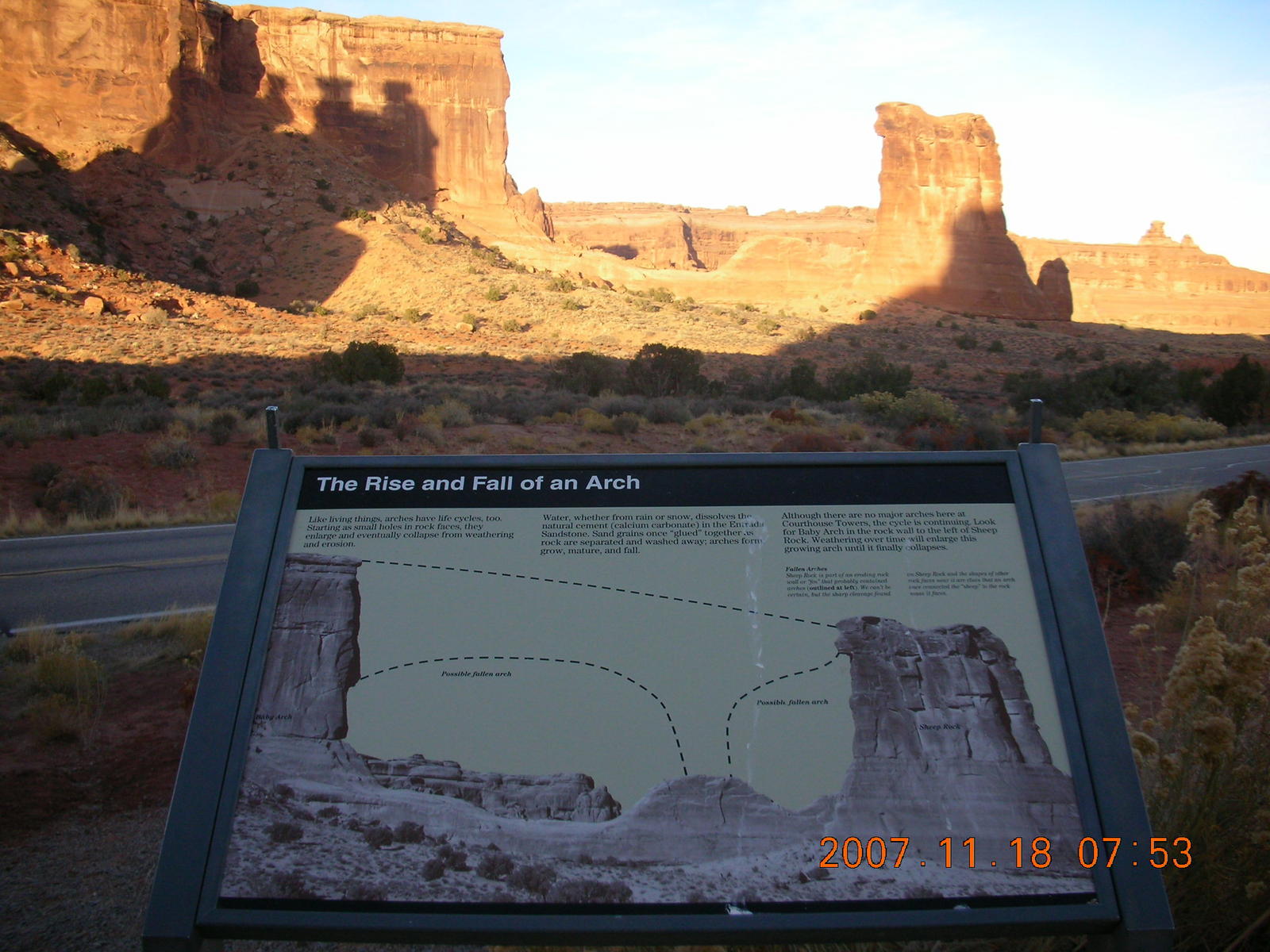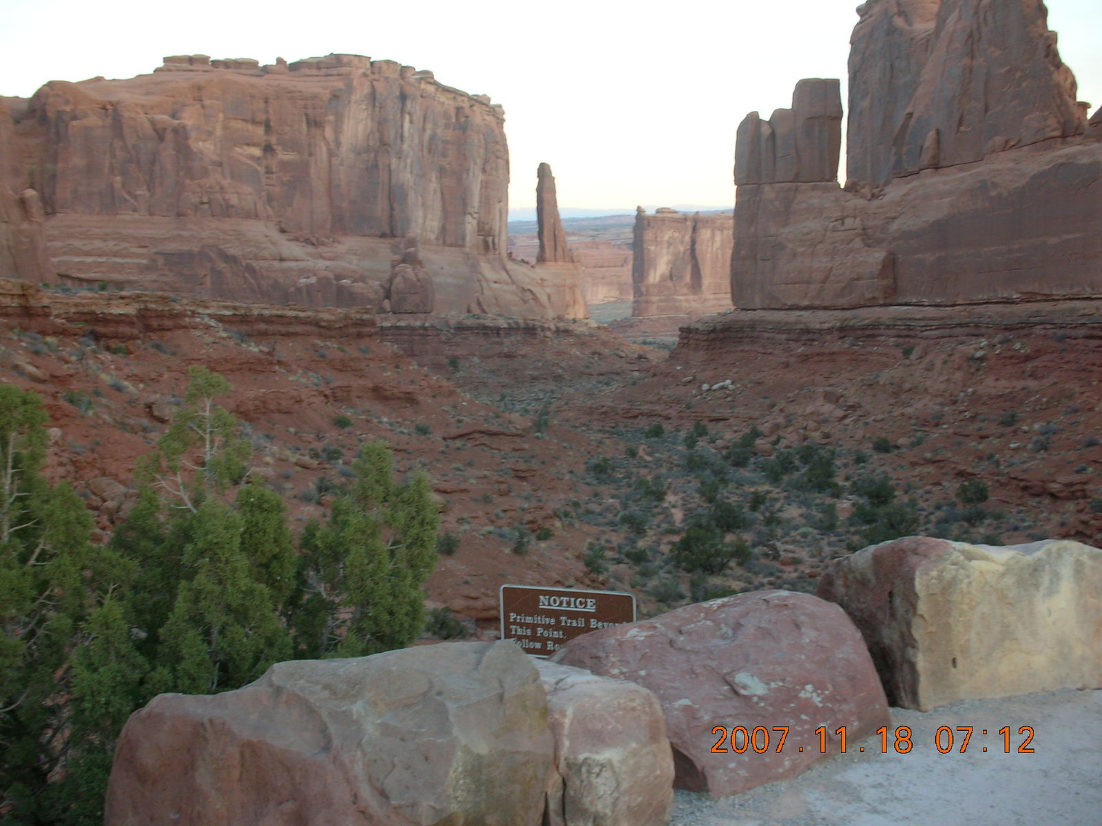 2007 November 18, Sunday, 6bj-zbu.jpg * Arches National Park - Park Avenue Trail at daybreak - sign