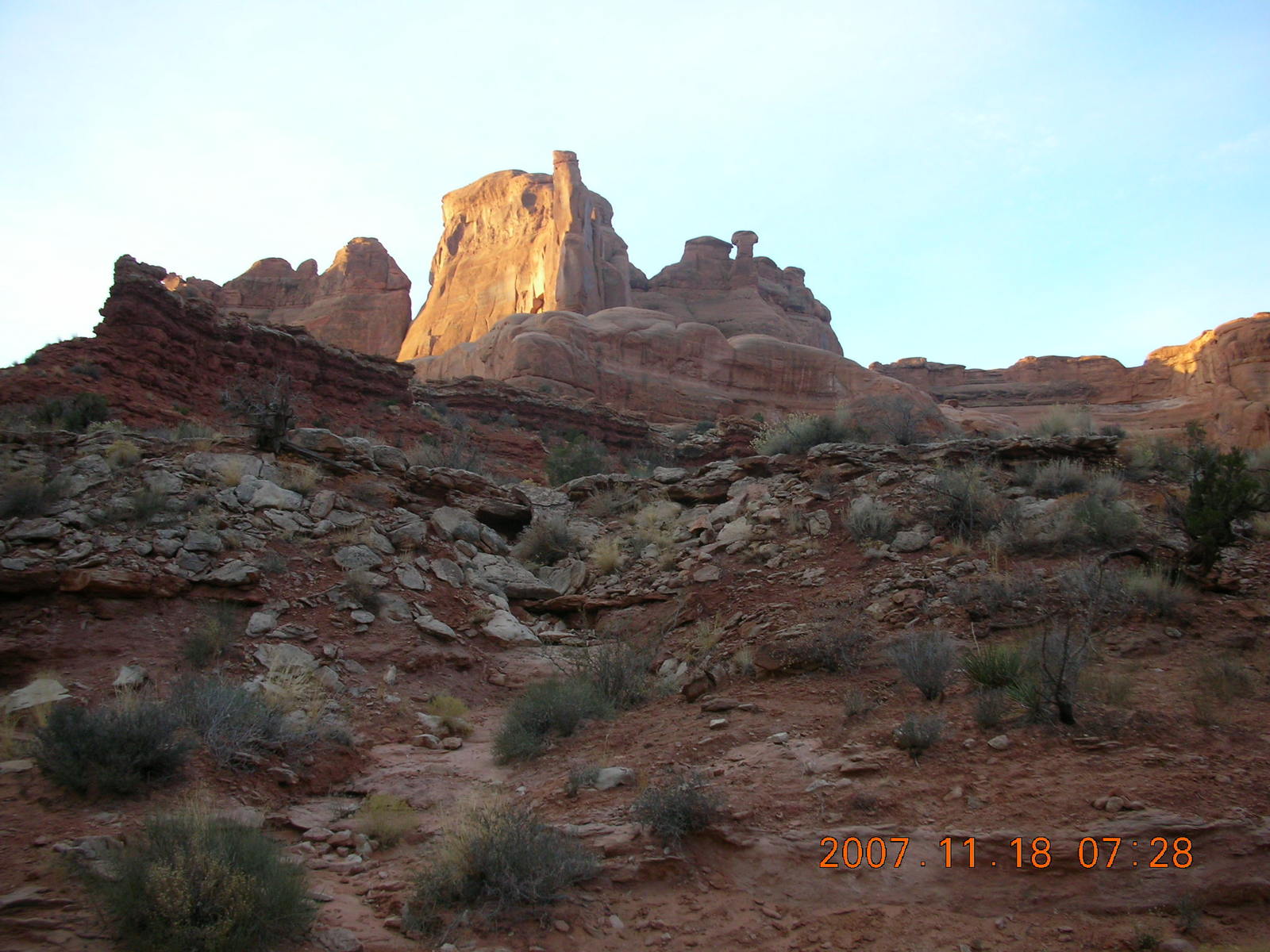 2007 November 18, Sunday, 6bj-zcq.jpg * Arches National Park - Park Avenue Trail at daybreak