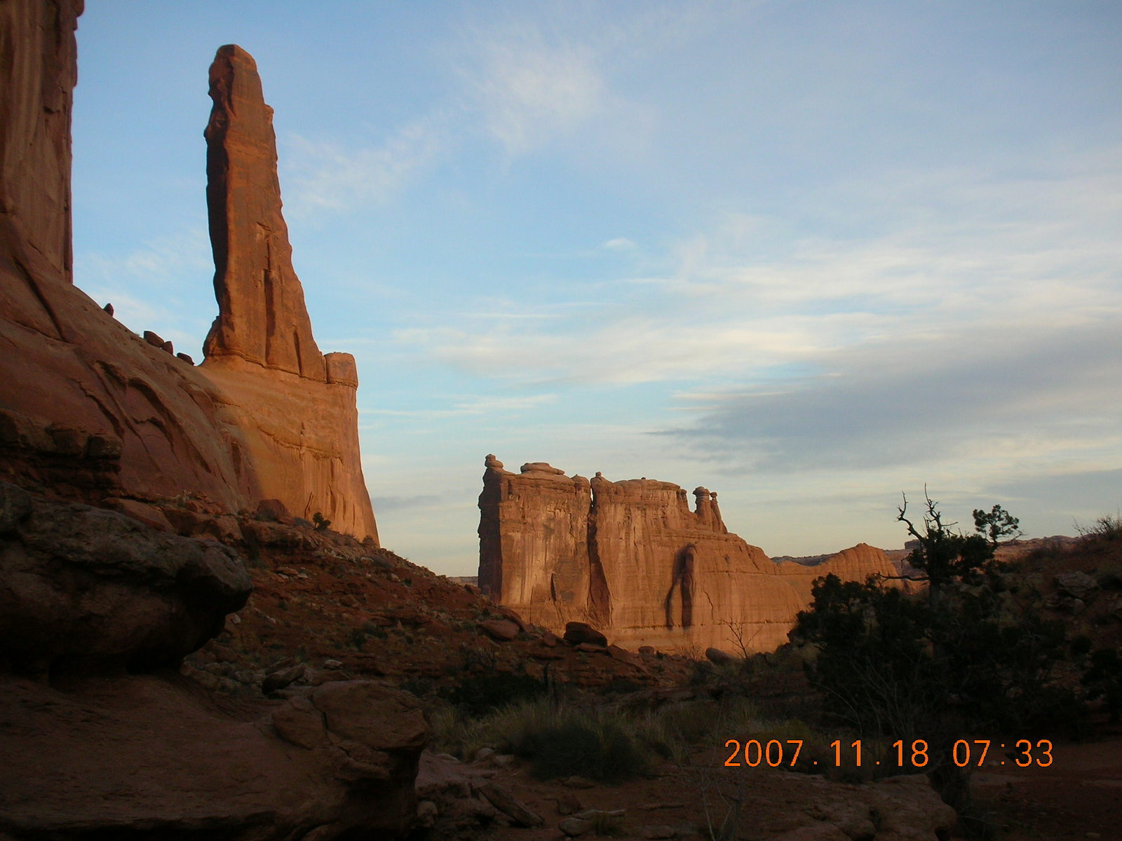 2007 November 18, Sunday, 6bj-zci.jpg * Arches National Park - Park Avenue Trail at daybreak
