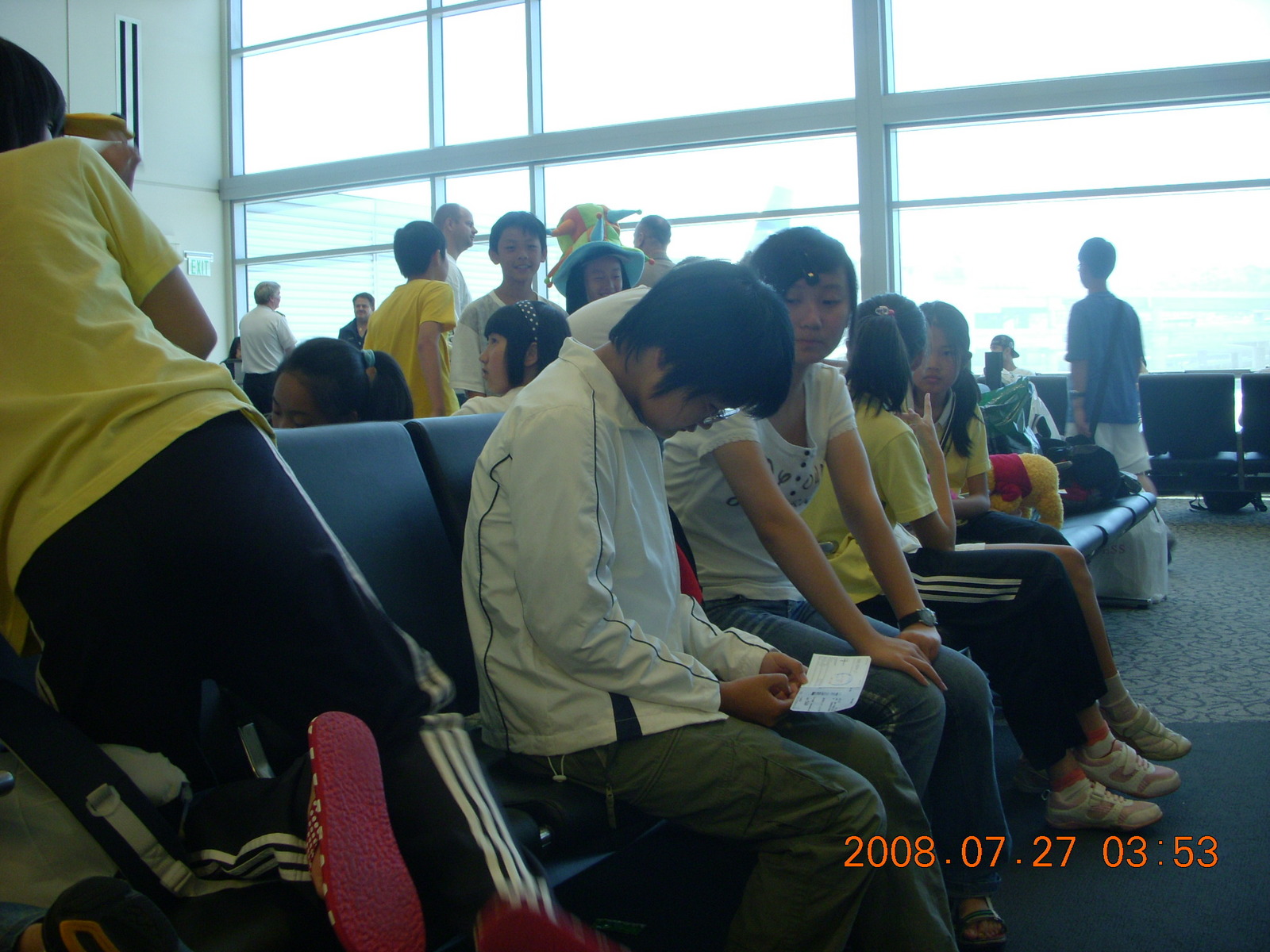 2008 August 3, Sunday, 6l3-lr4.jpg * a whole lotta Chinese kids waiting for flight to Shanghai (PVG)