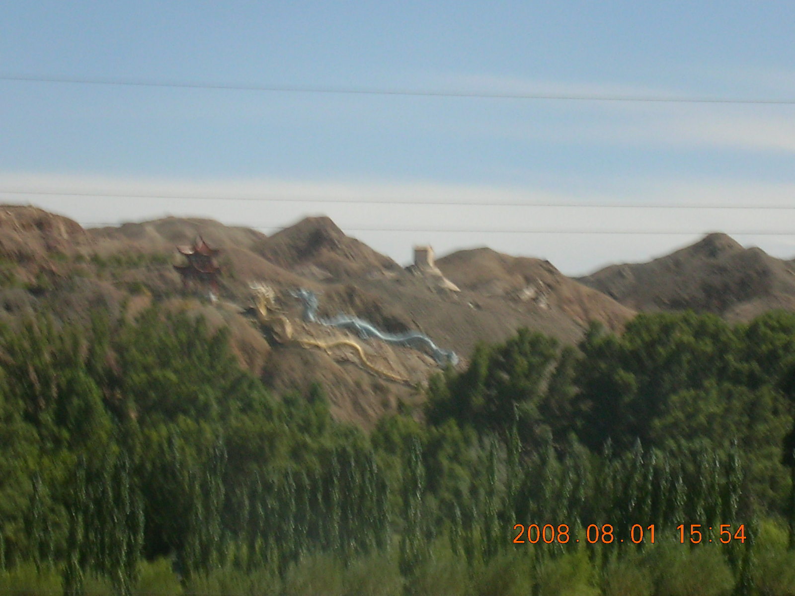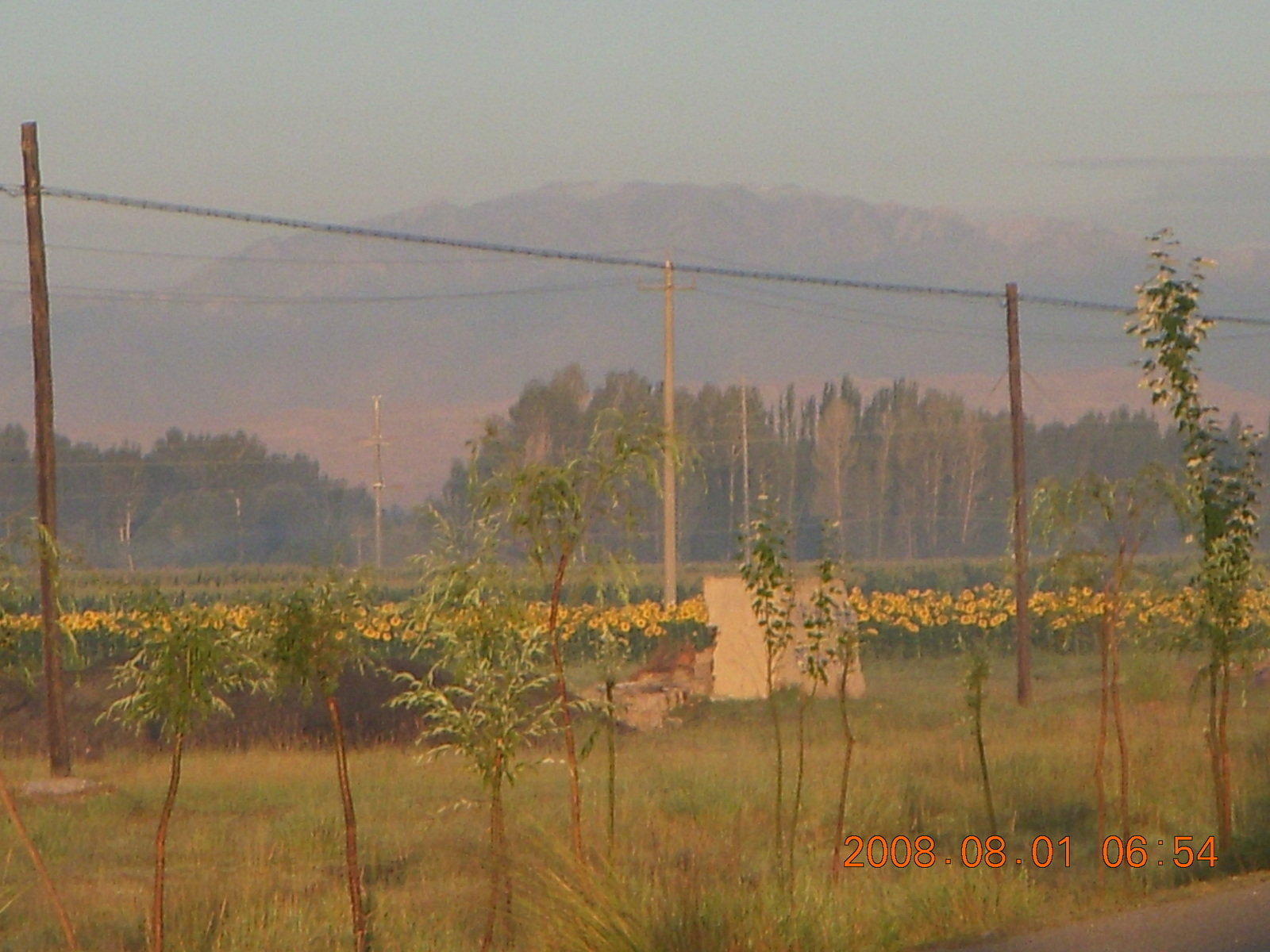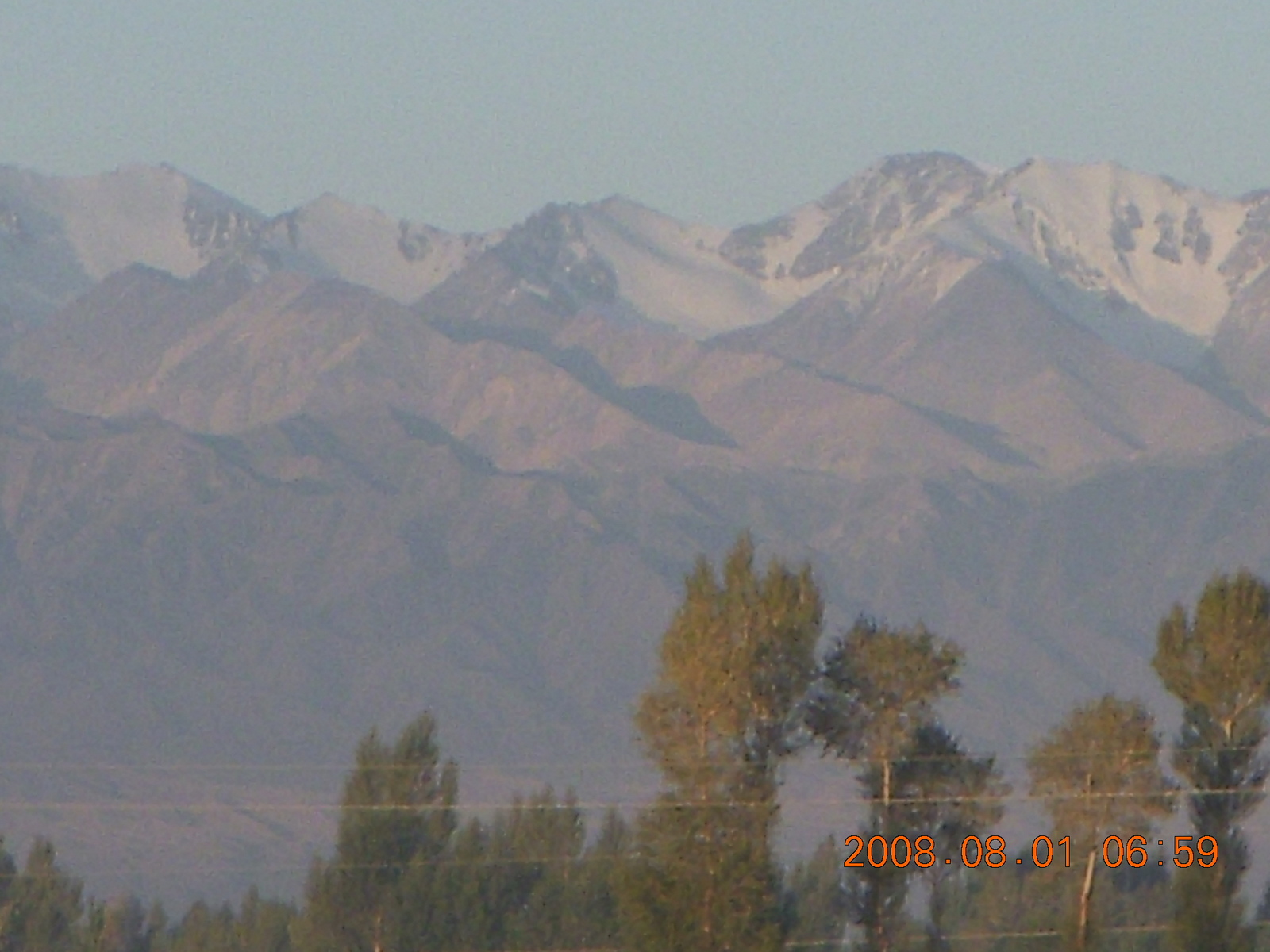 2008 August 3, Sunday, 6l3-s7j.jpg * eclipse - Jiuquan morning run - trees and mountains