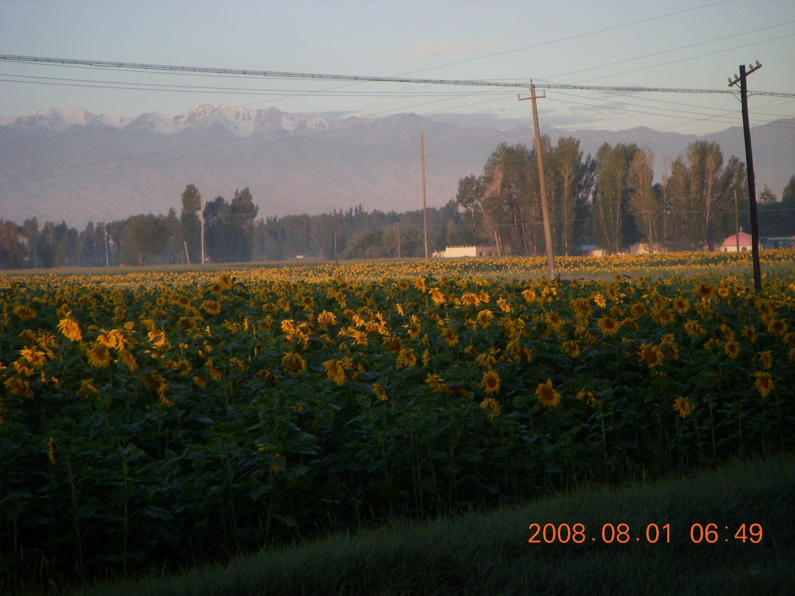 2008 August 3, Sunday, 6l3-s7c.jpg * eclipse - Jiuquan morning run sunflowers and mountains