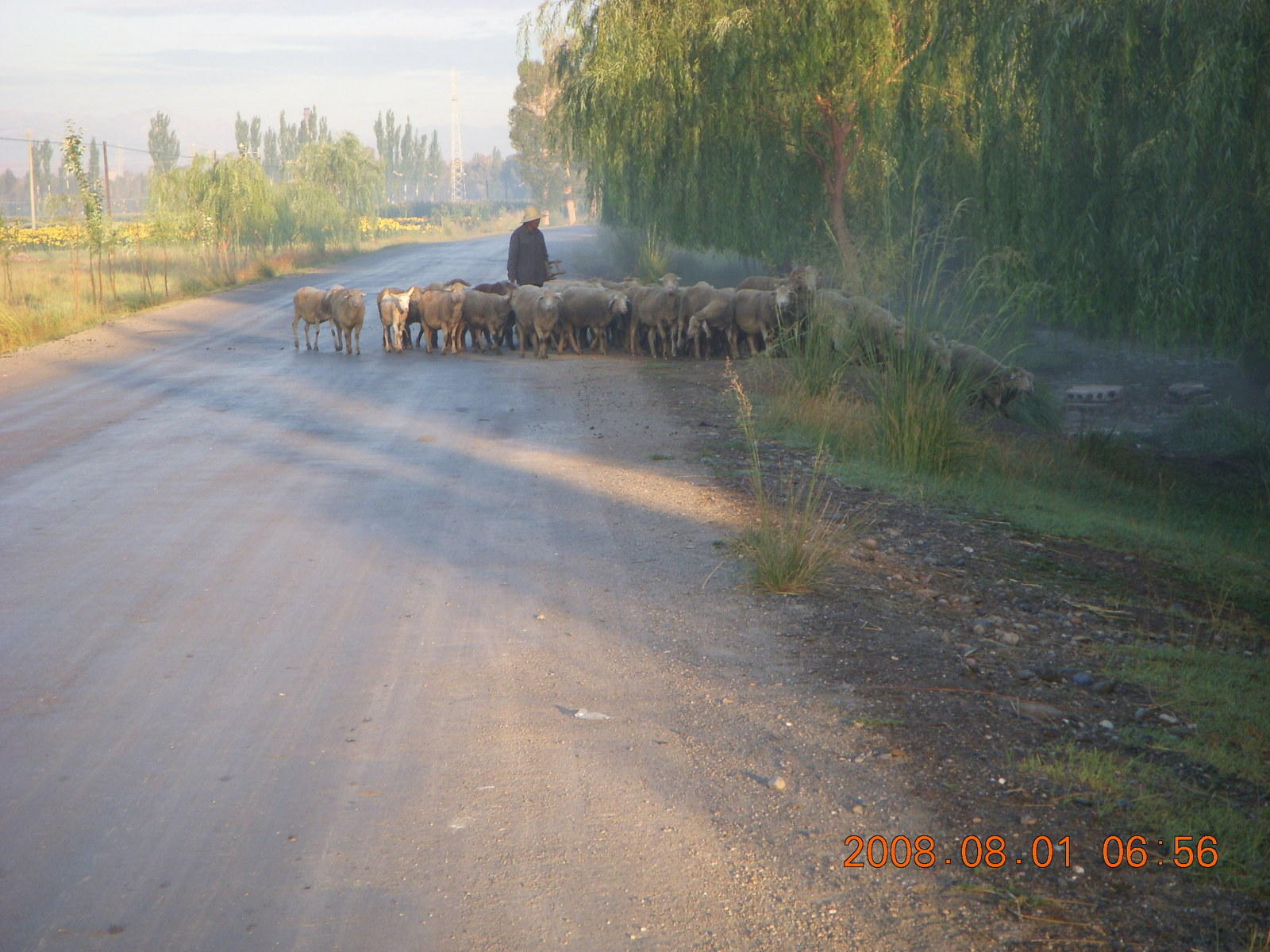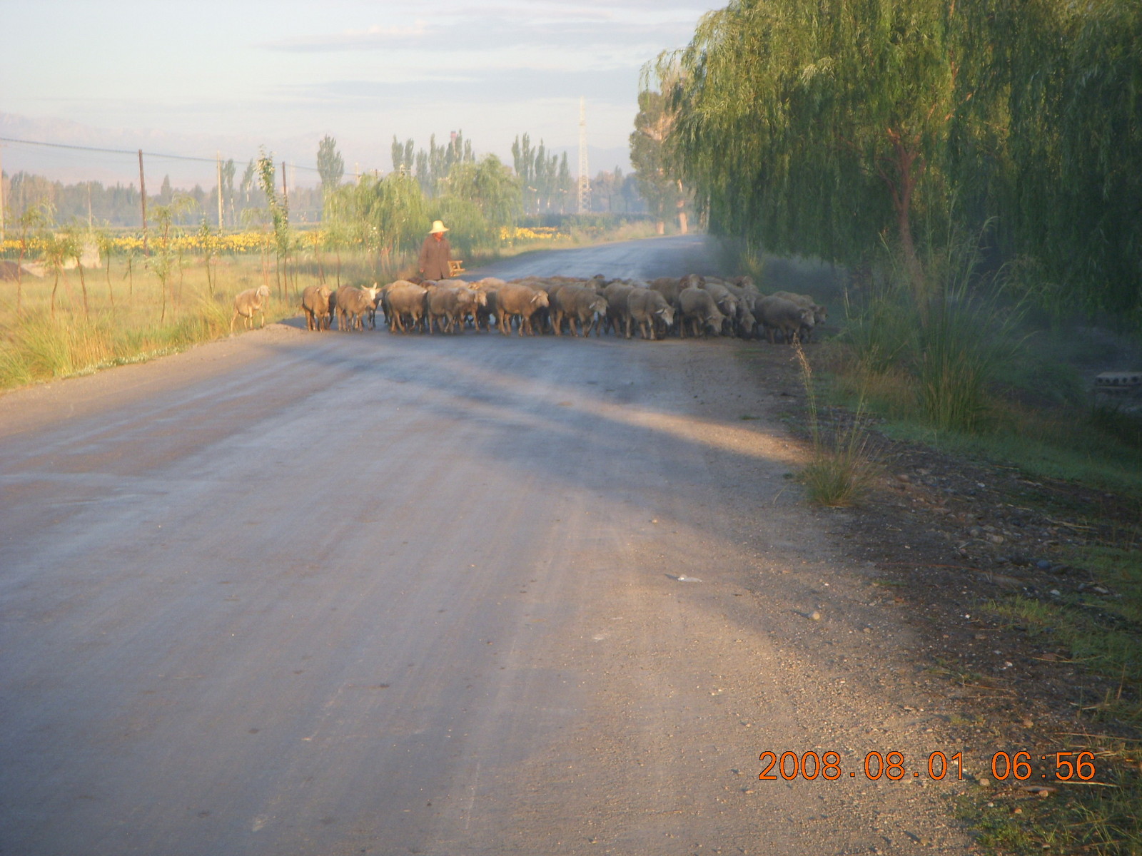 2008 August 3, Sunday, 6l3-s7p.jpg * eclipse - Jiuquan morning run - sheep