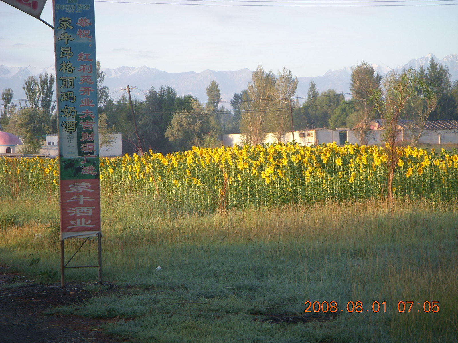 2008 August 3, Sunday, 6l3-s7y.jpg * eclipse - Jiuquan morning run - sunflowers and mountain