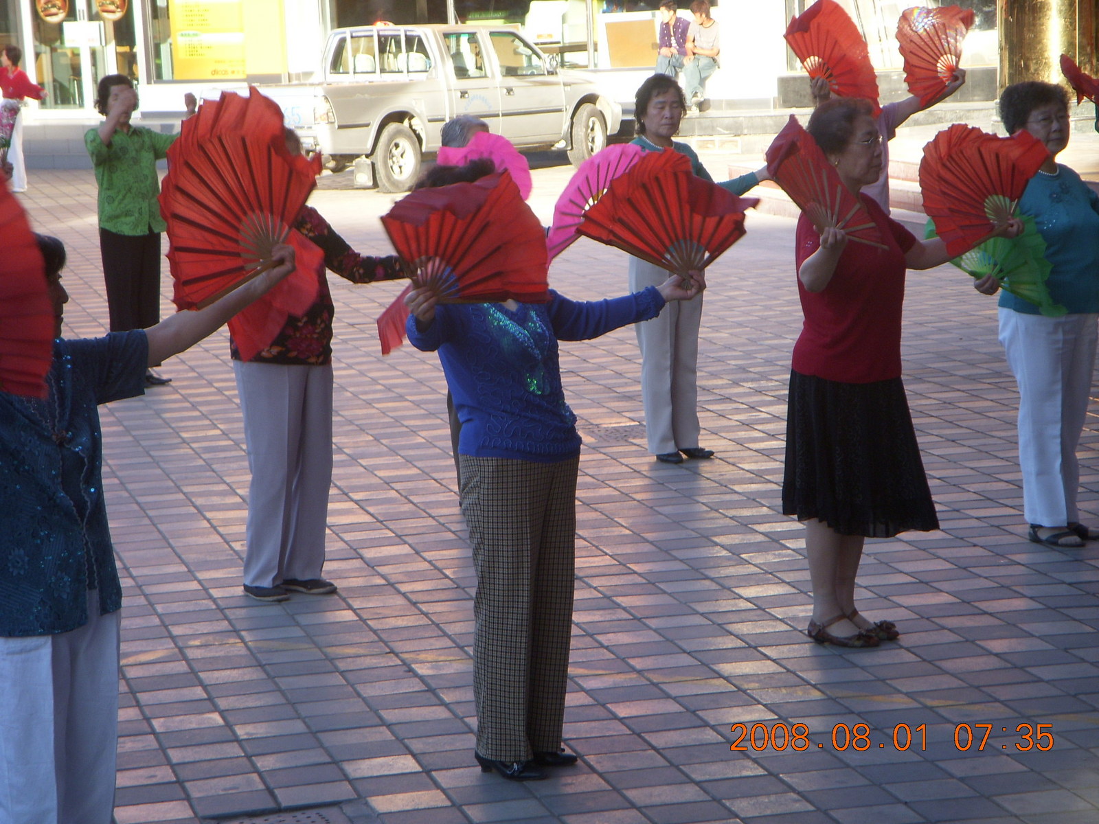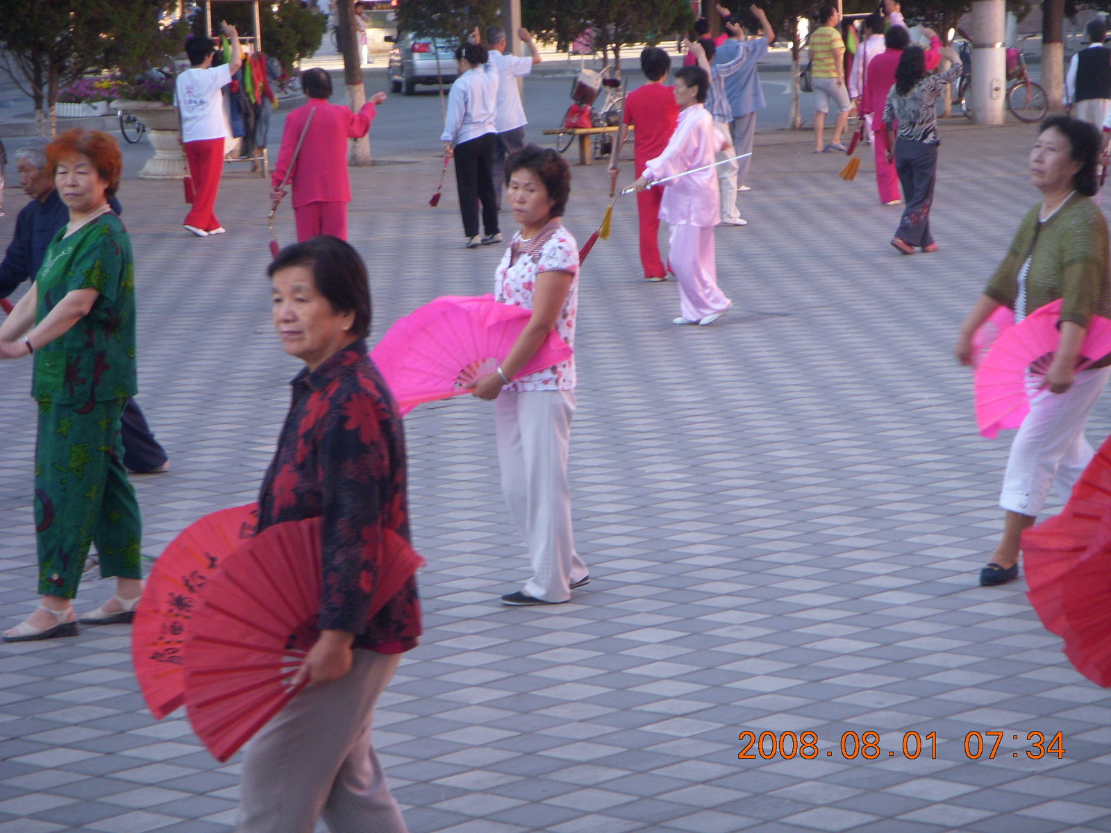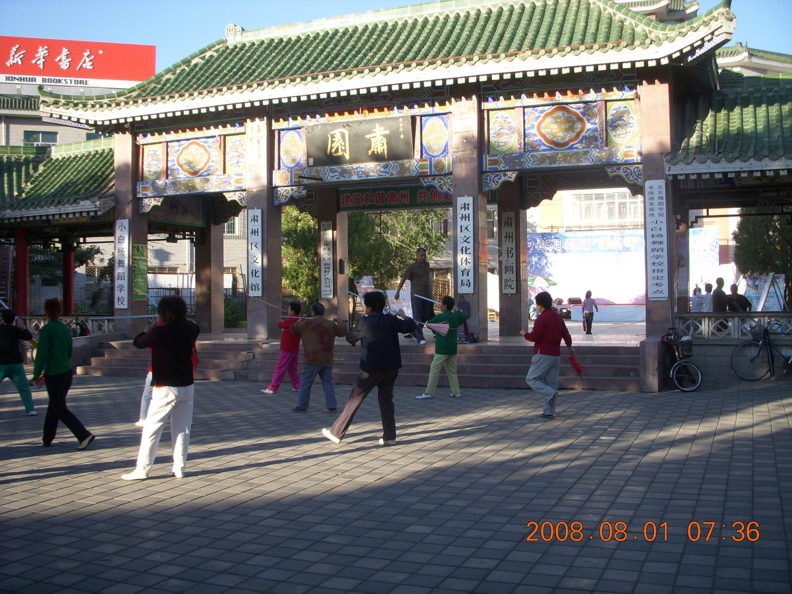 2008 August 3, Sunday, 6l3-s8o.jpg * eclipse - Jiuquan morning run - Tai Chi people