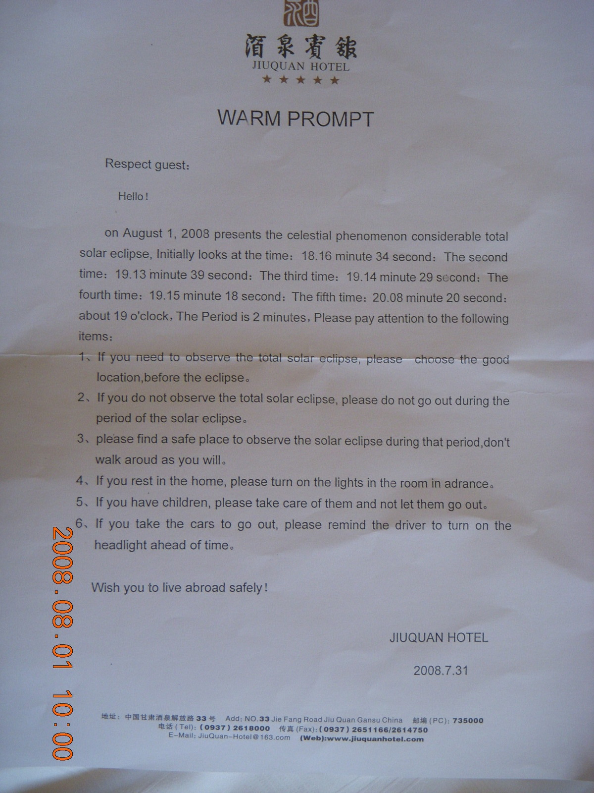 2008 August 3, Sunday, 6l3-s9n.jpg * eclipse - Jiuquan - hotel eclipse notes