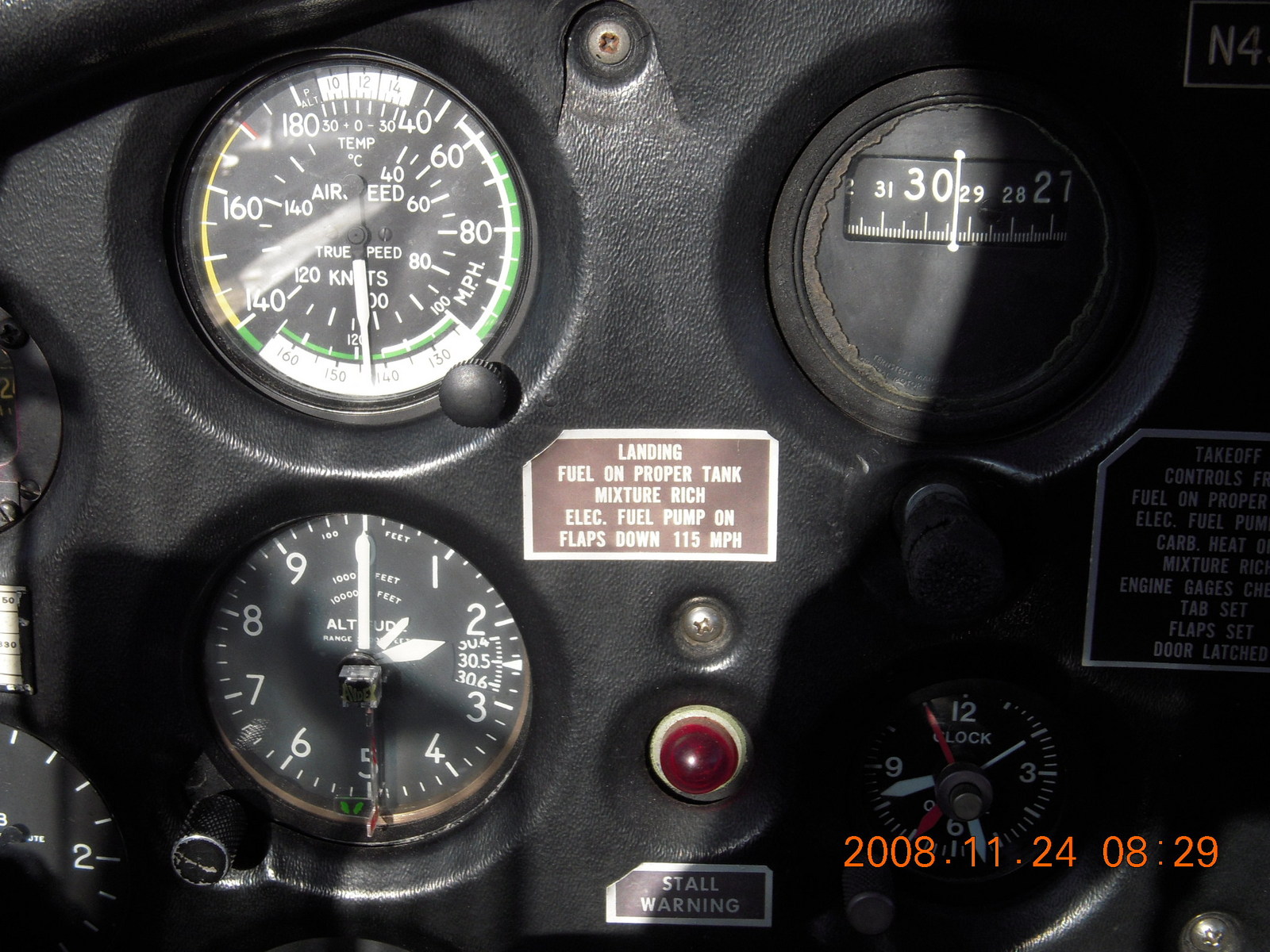 2008 November 24, Monday, 6pq-v97.jpg * N4372J panel with altimeter at 12000 feet