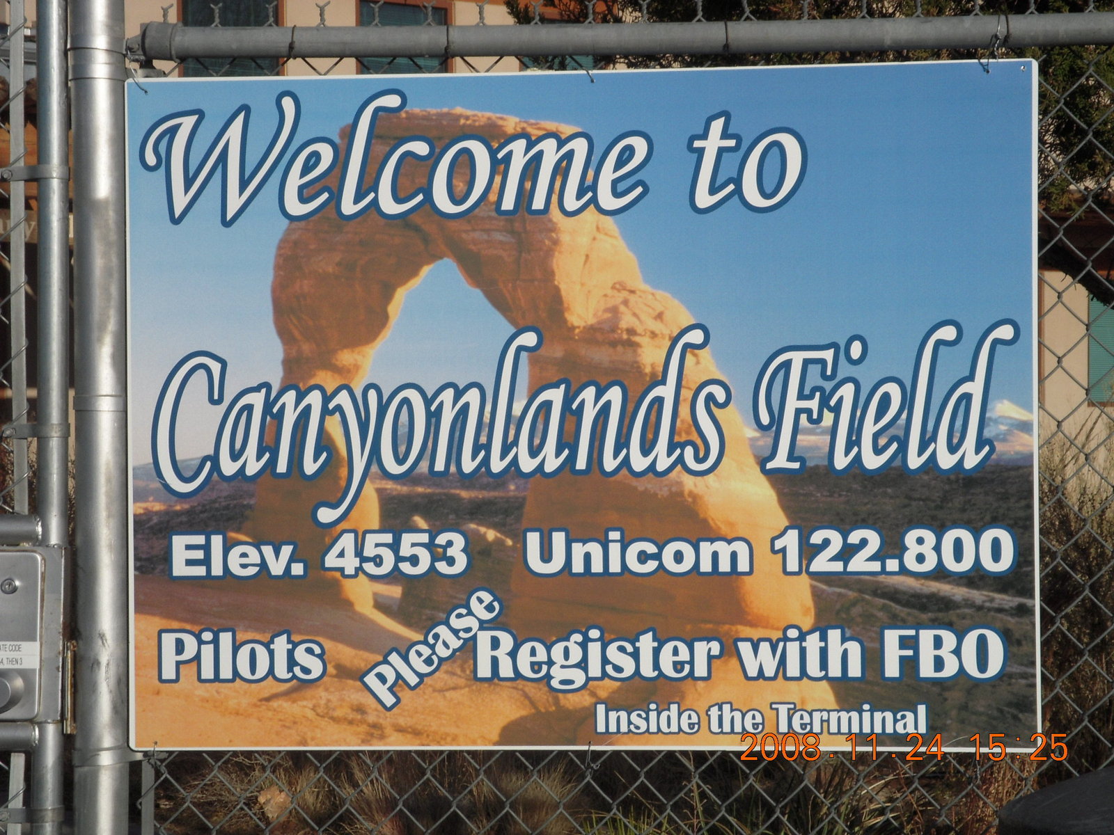 2008 November 24, Monday, 6pq-v6q.jpg * pre-dawn Canyonlands Airport (CNY) sign