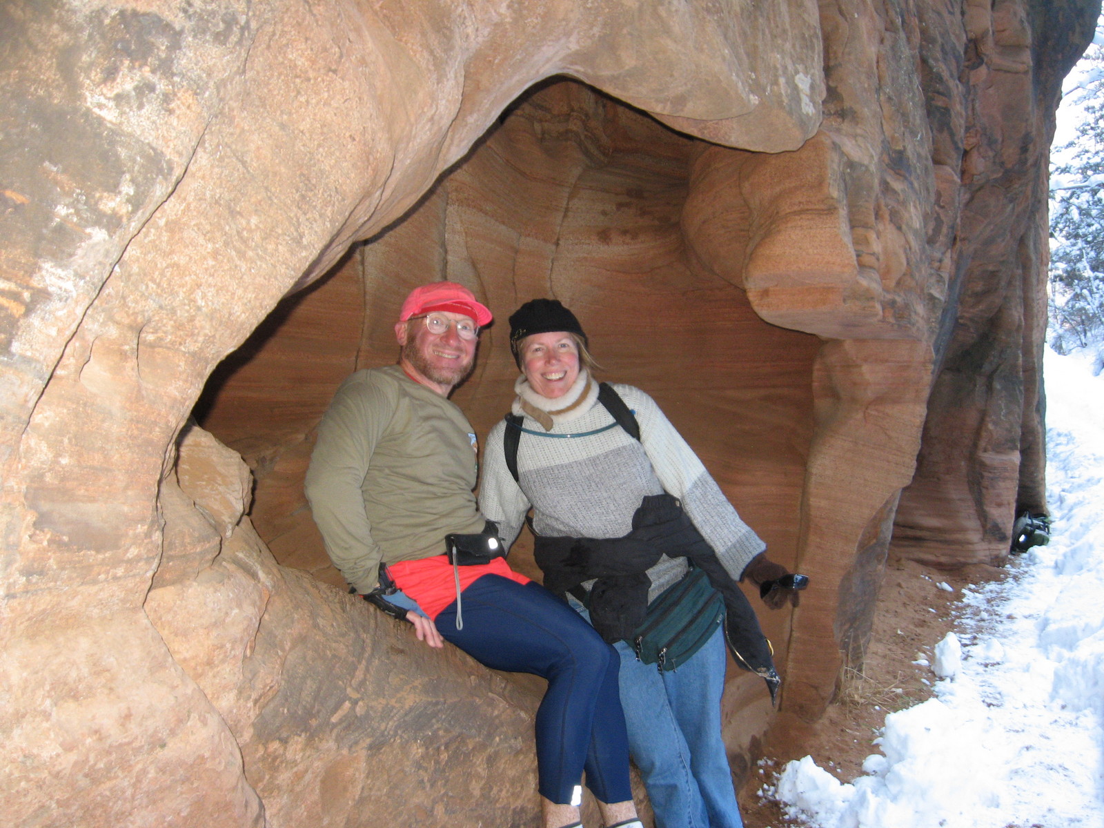 2009 January 1, Thursday, 6r1-drp.jpg * debbie's Zion-trip pictures - Beth, Adam in the rock