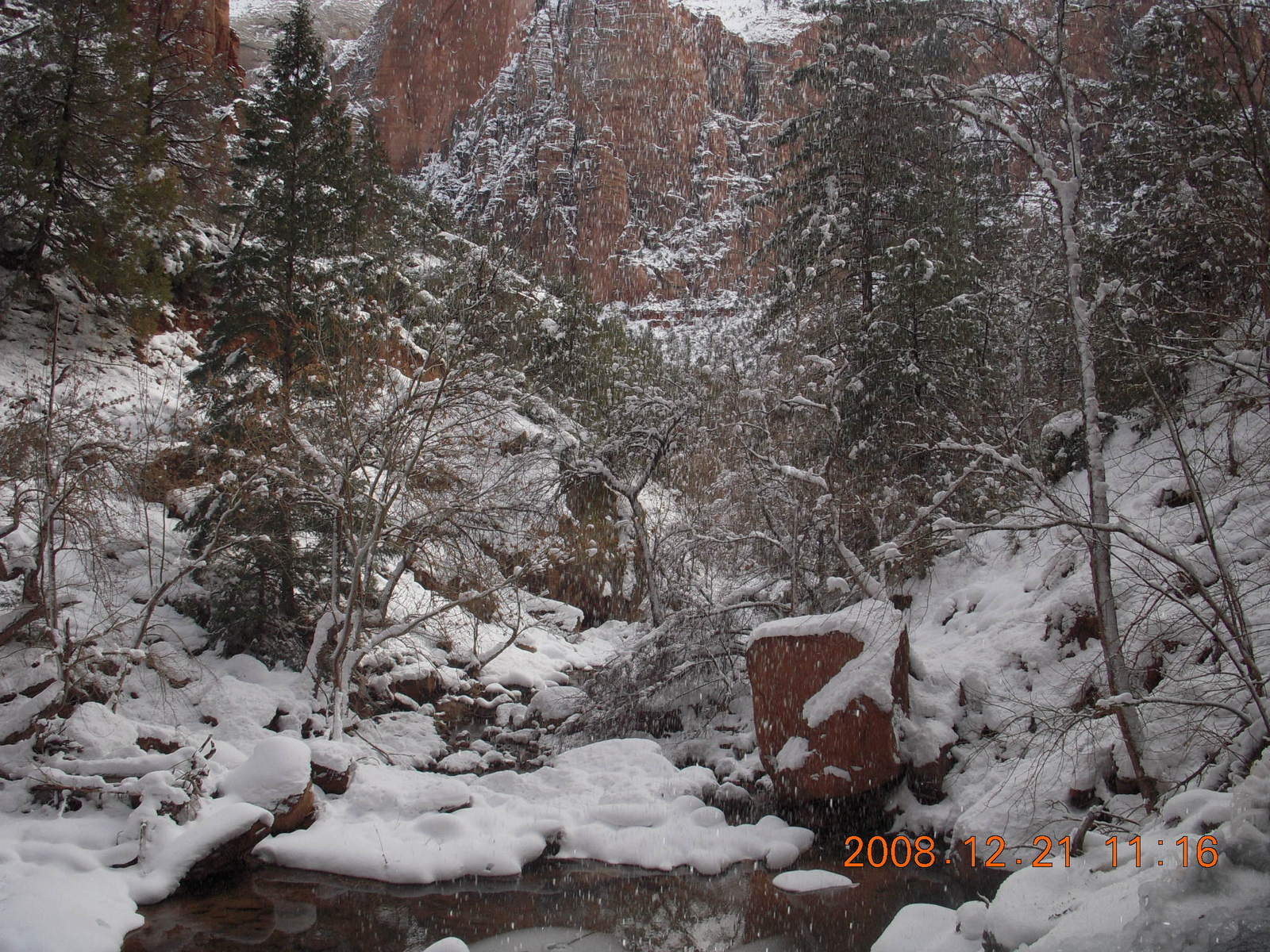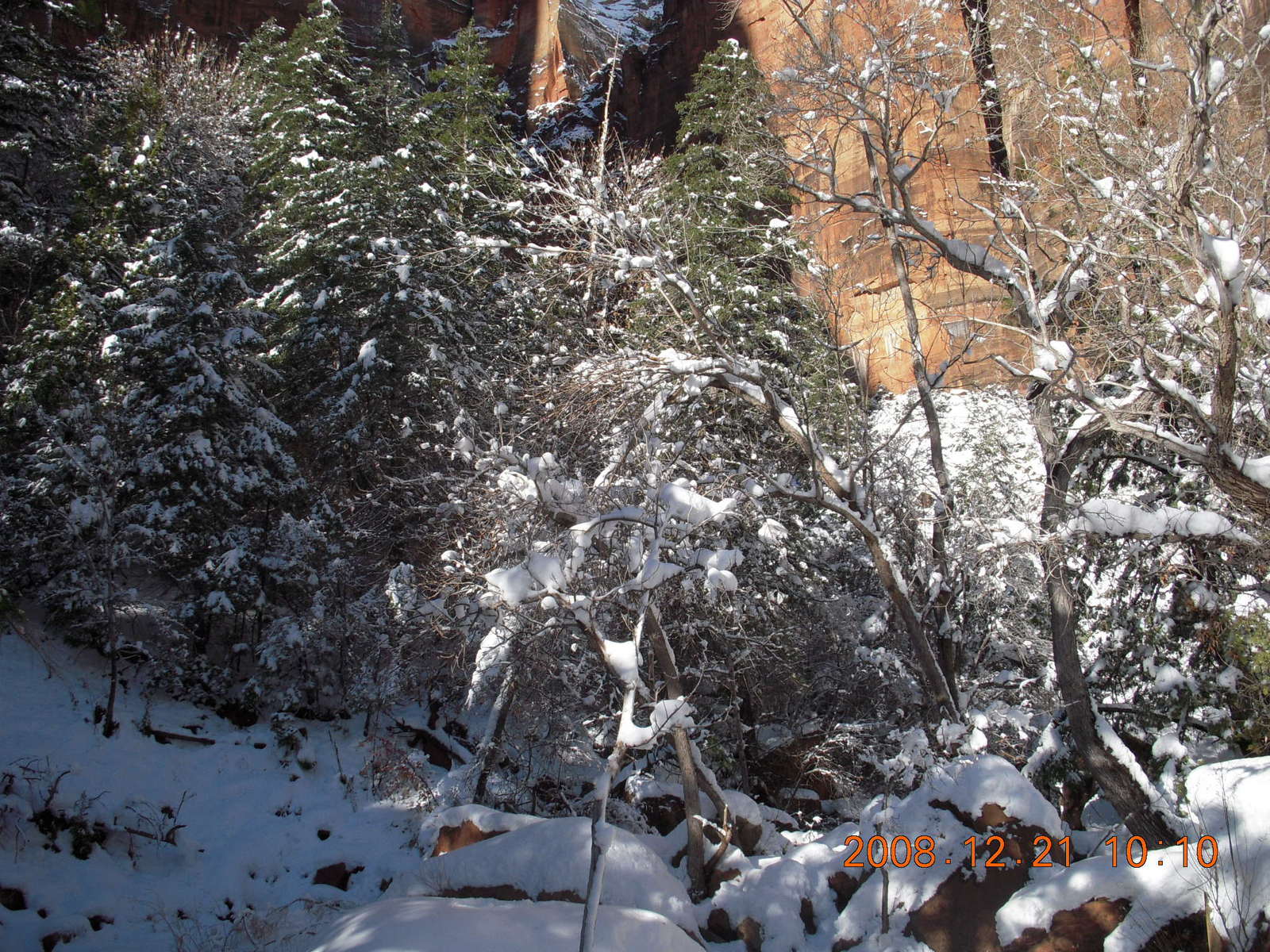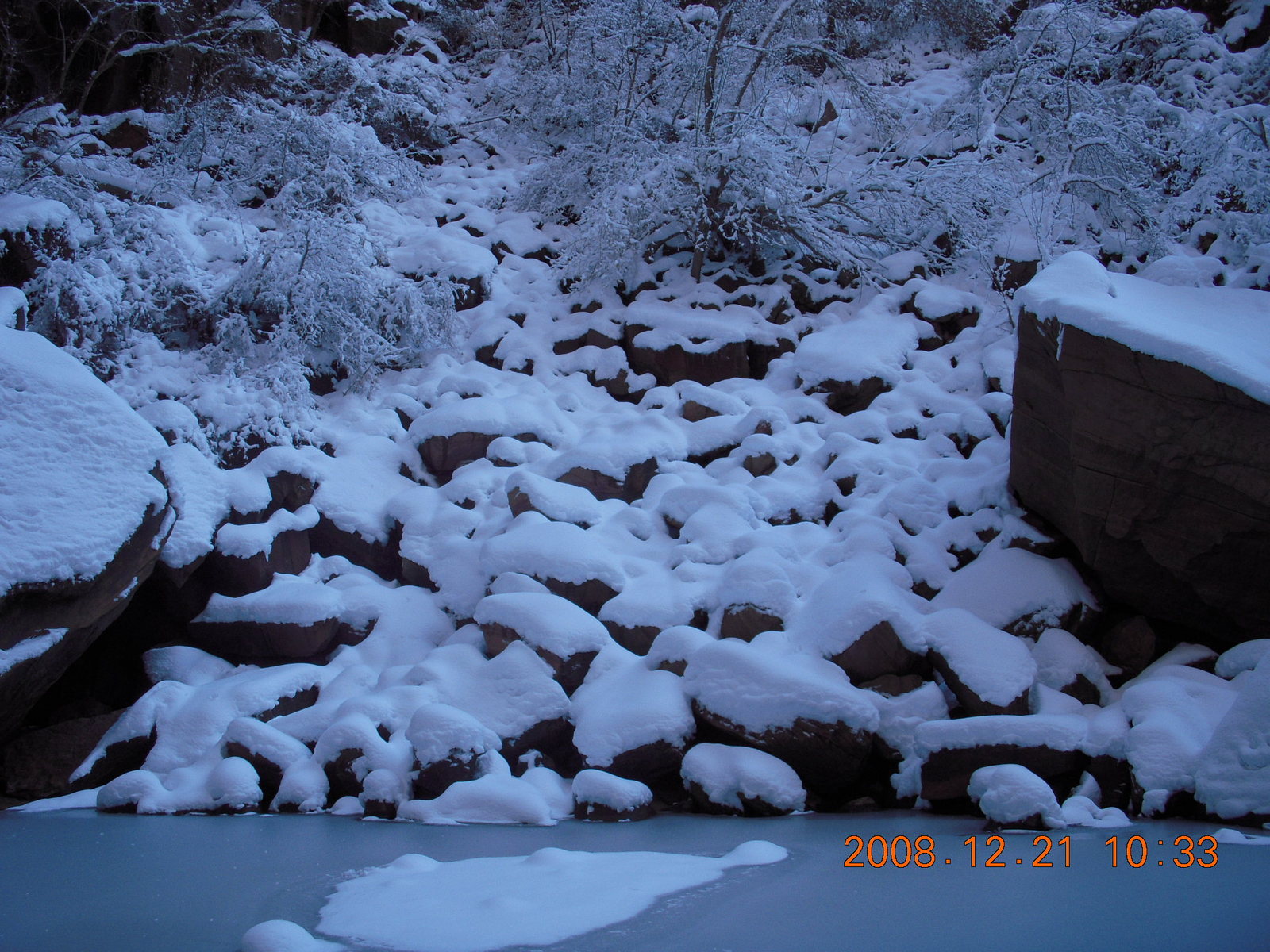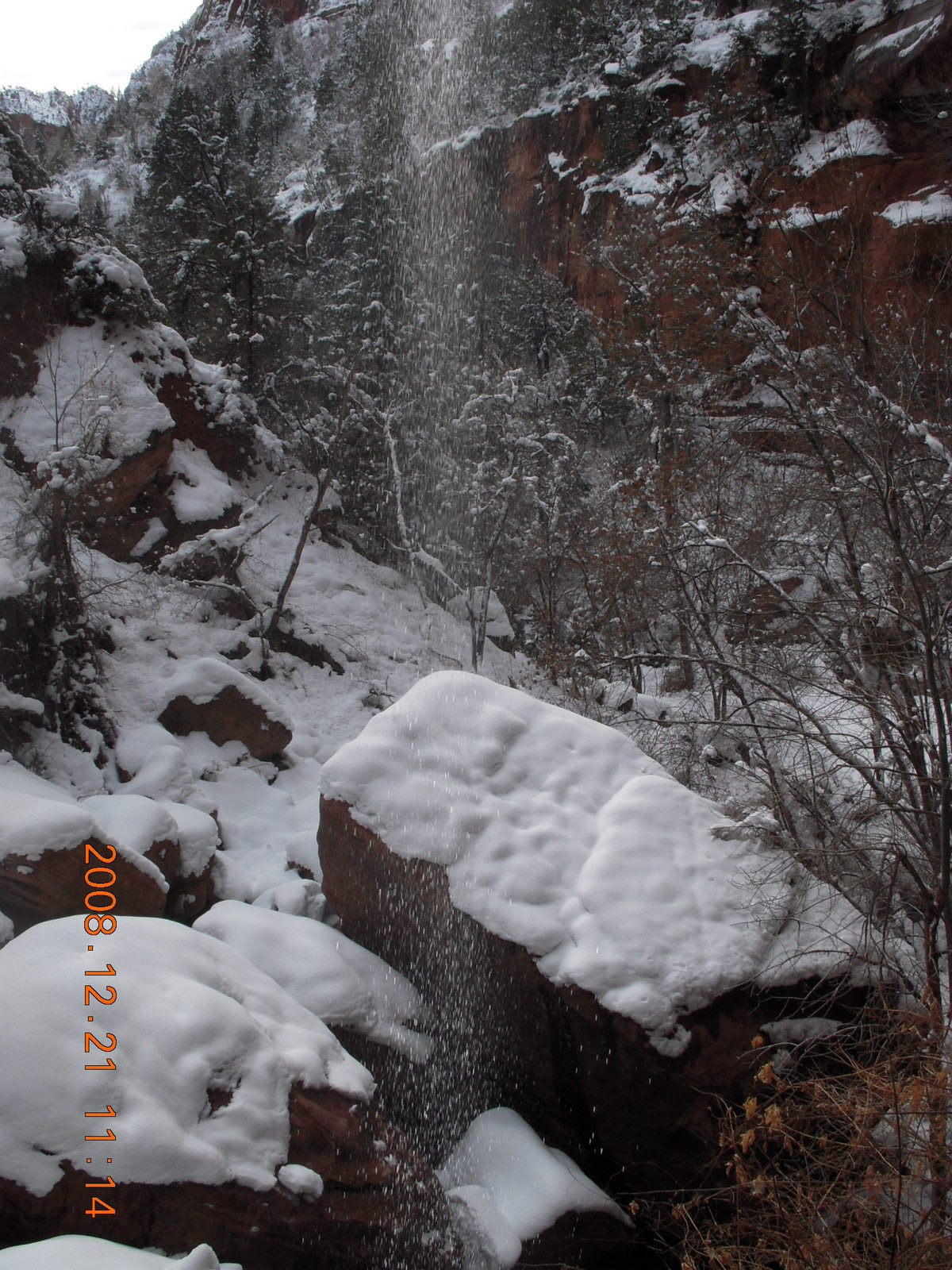 2008 December 21, Sunday, 6qm-v08.jpg * Zion National Park - ice and snow with flash