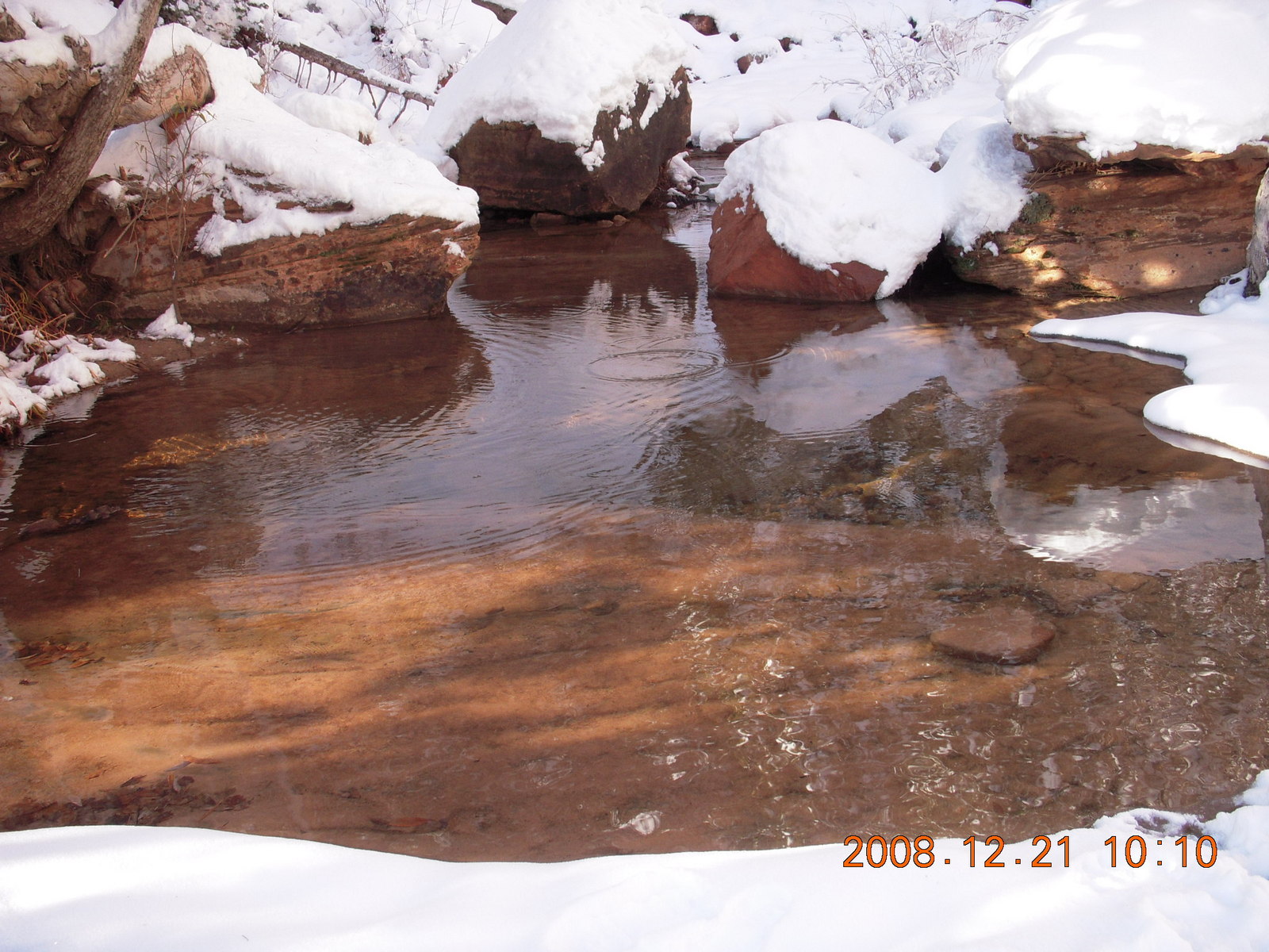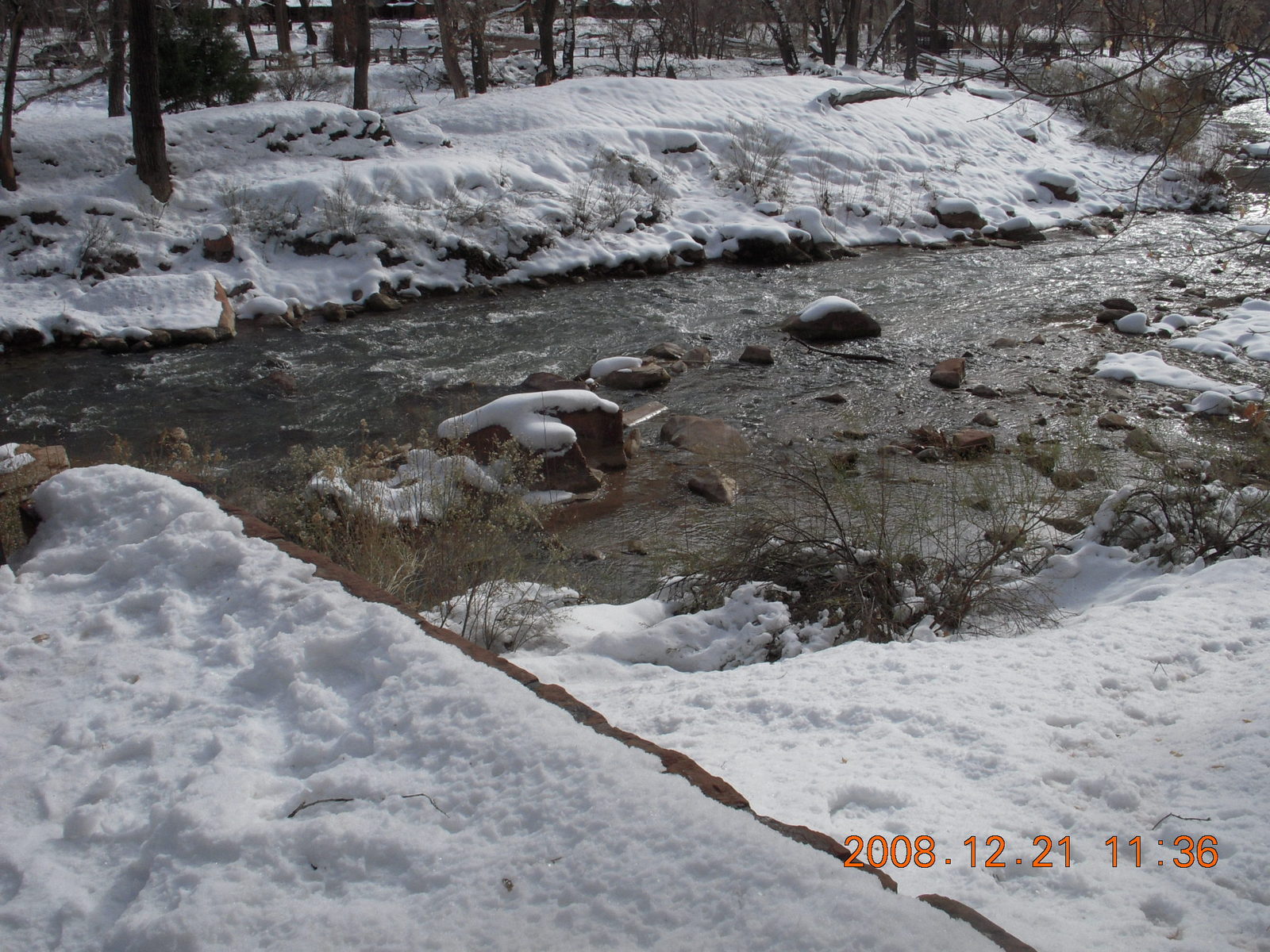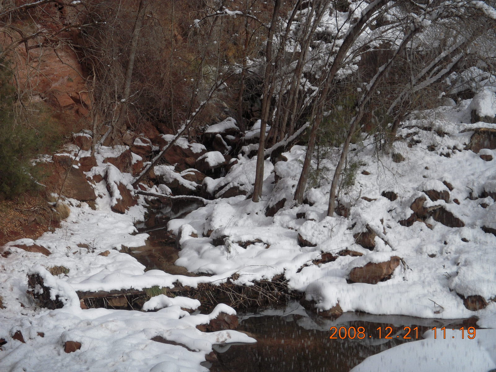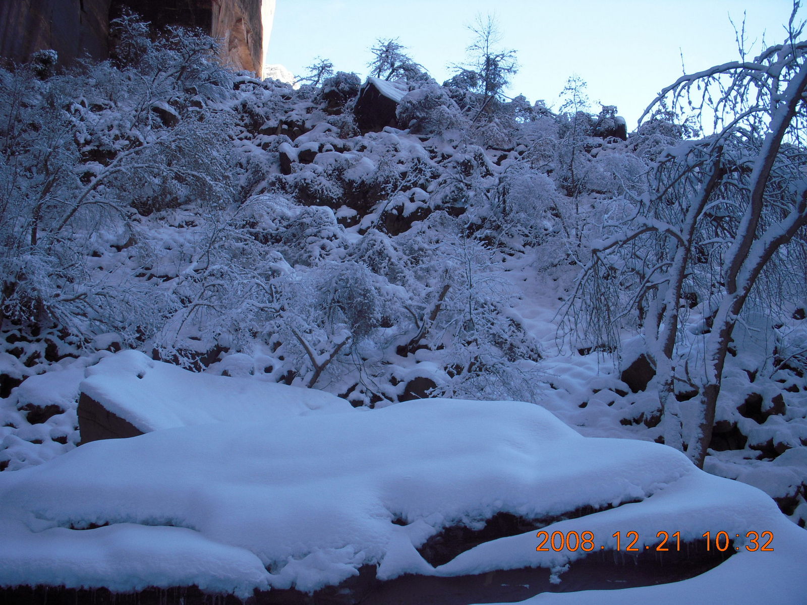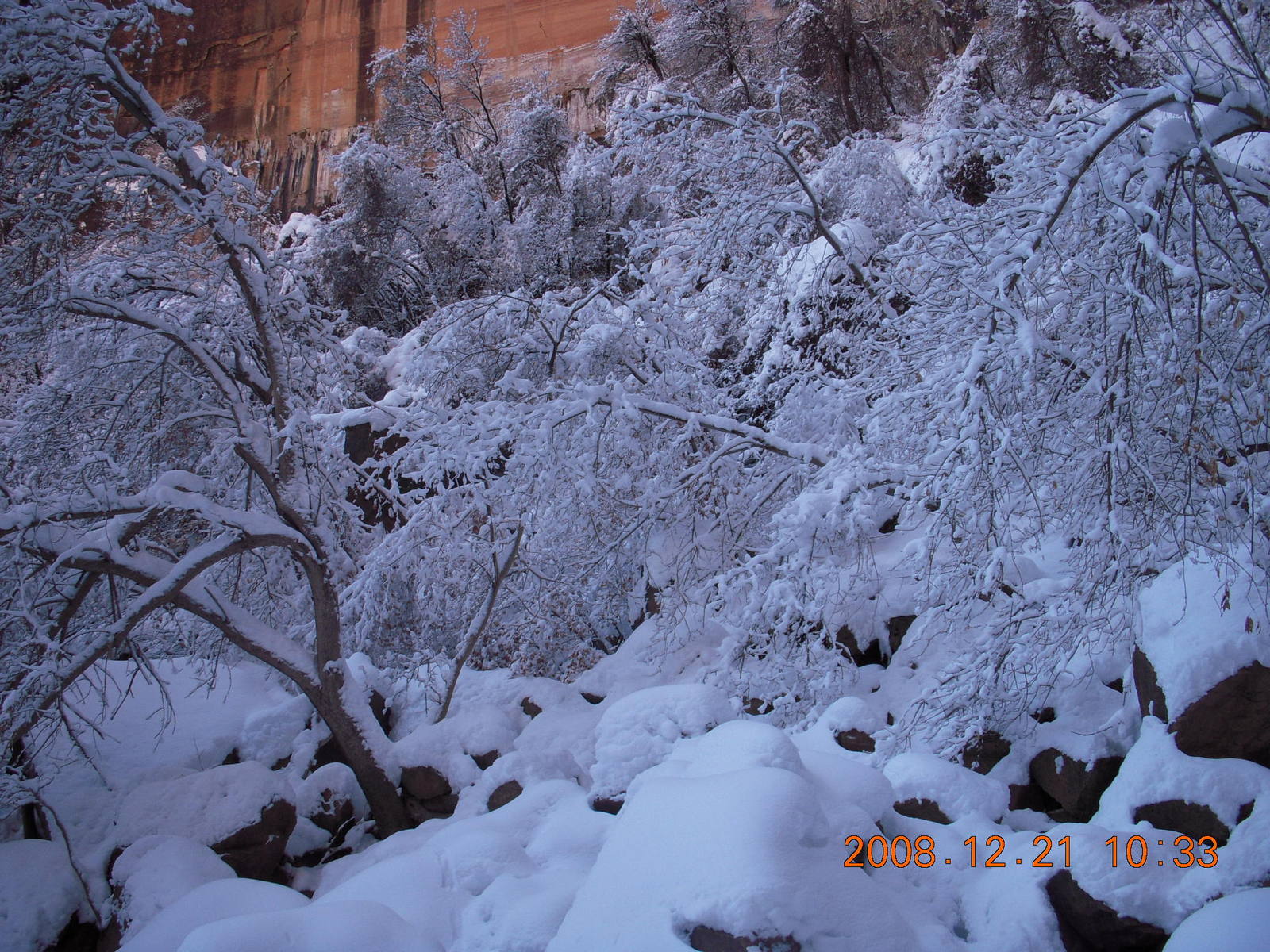 2008 December 21, Sunday, 6qm-v08.jpg * Zion National Park - ice and snow with flash