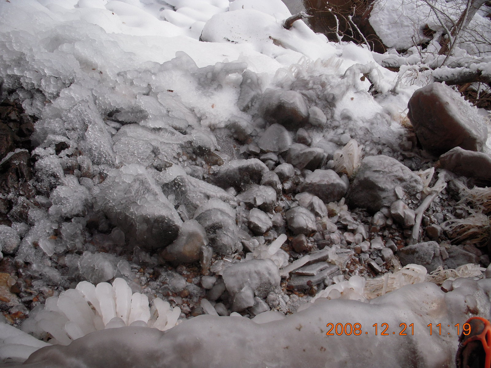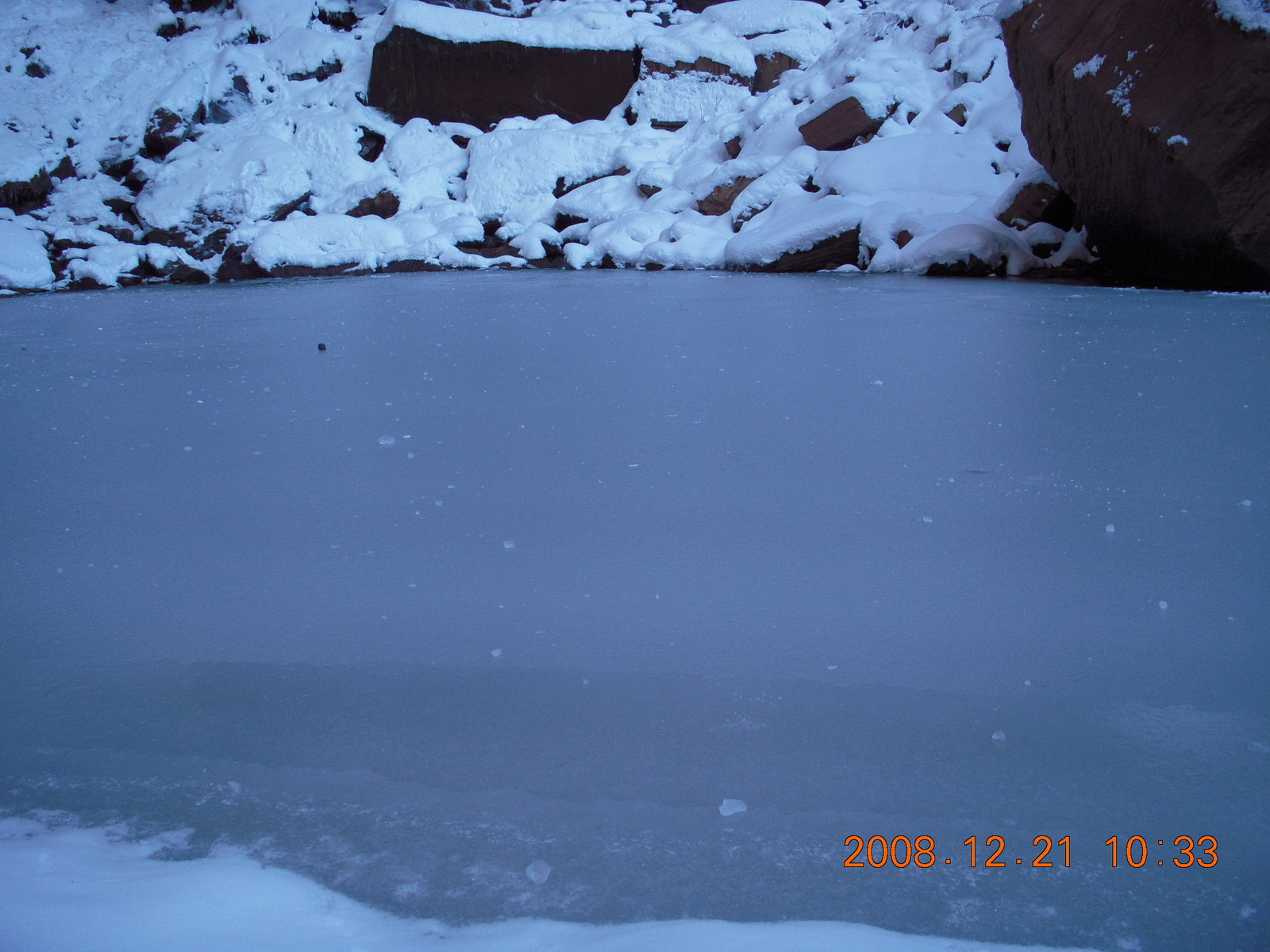 2008 December 21, Sunday, 6qm-v06.jpg * Zion National Park - ripply ice with flash