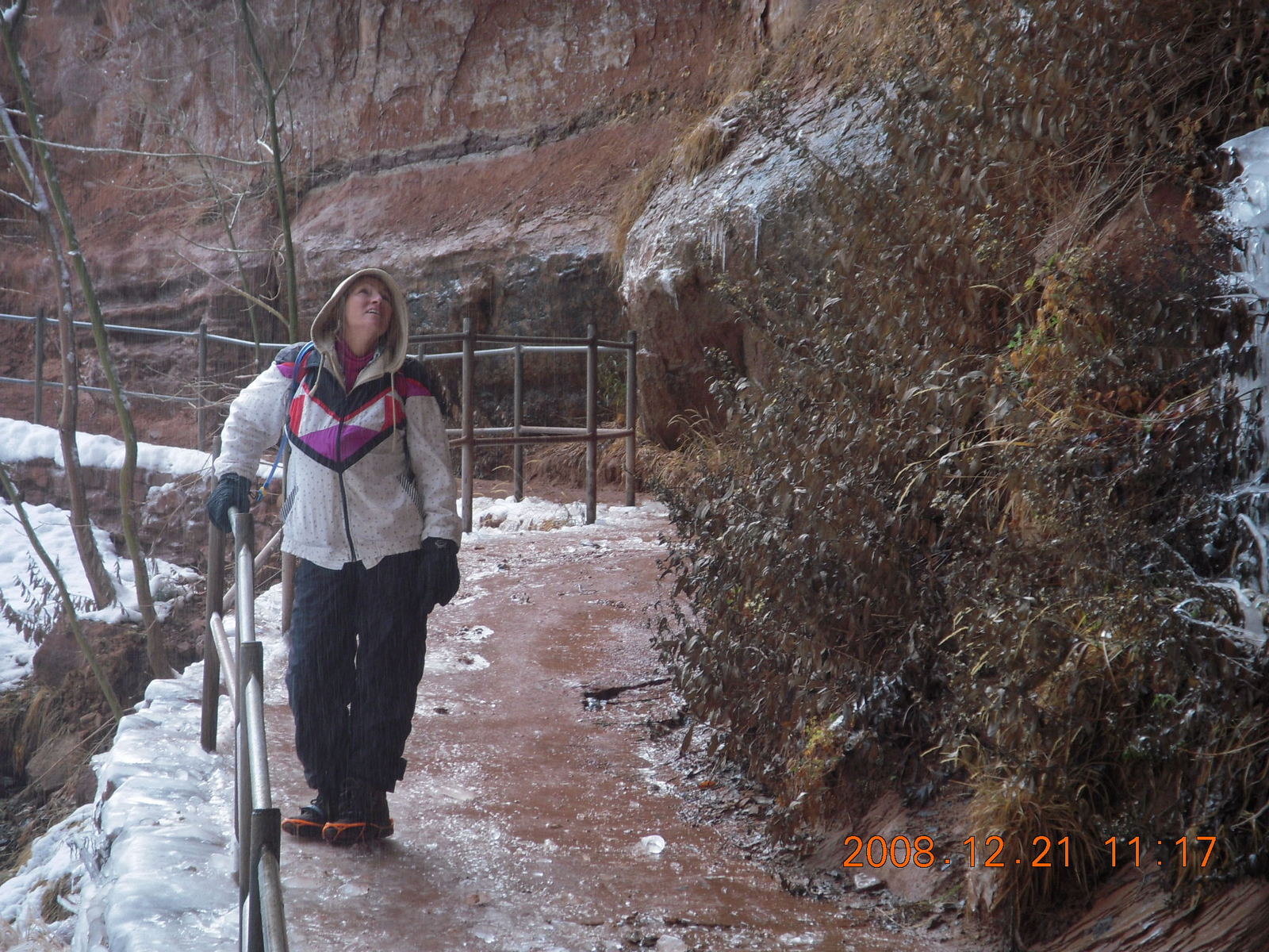 2008 December 21, Sunday, 6qm-v1s.jpg * Zion National Park - Emerald Pools hike - icicles