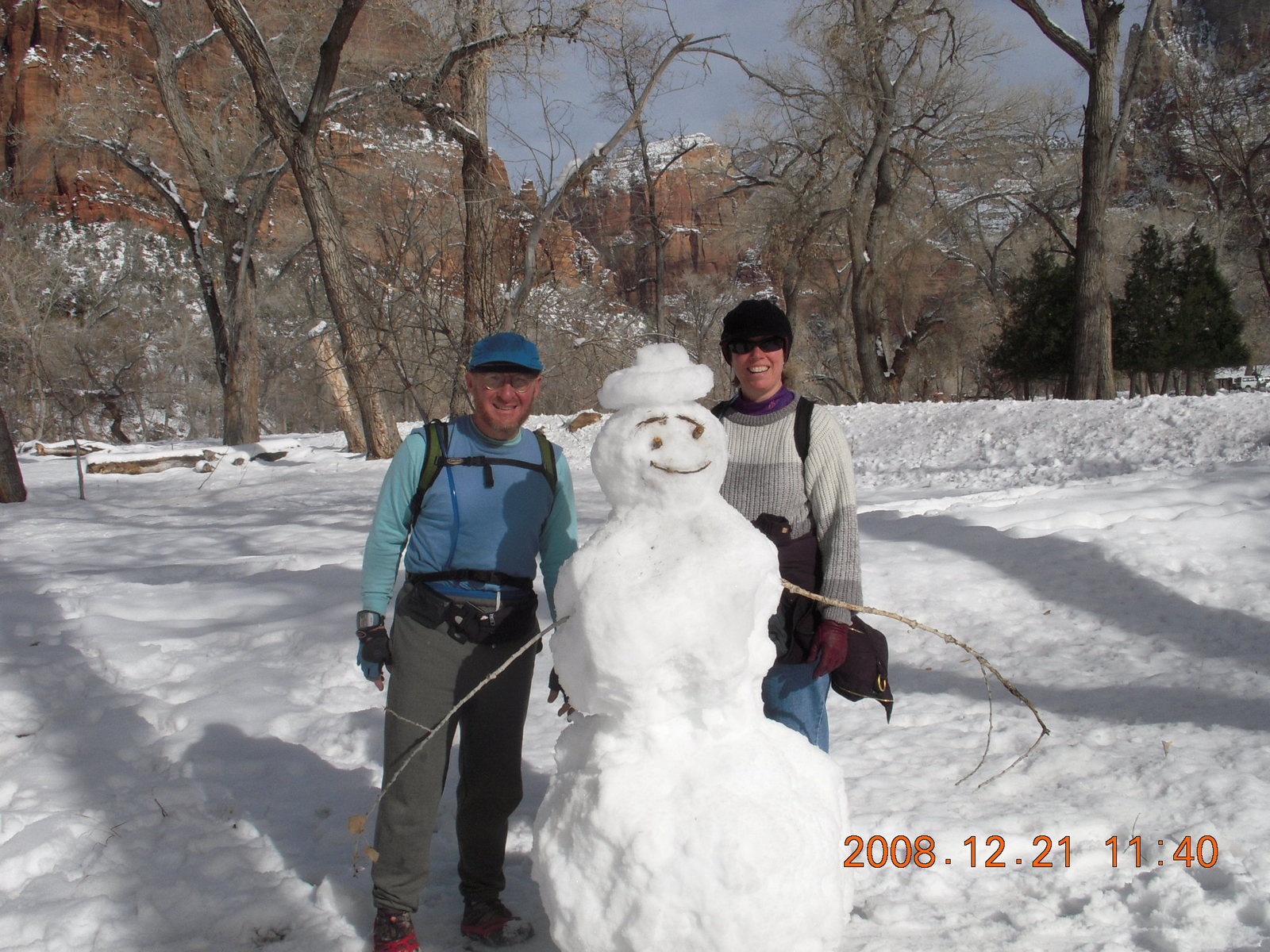 186 6qm. Zion National Park - Adam, snowman, Beth