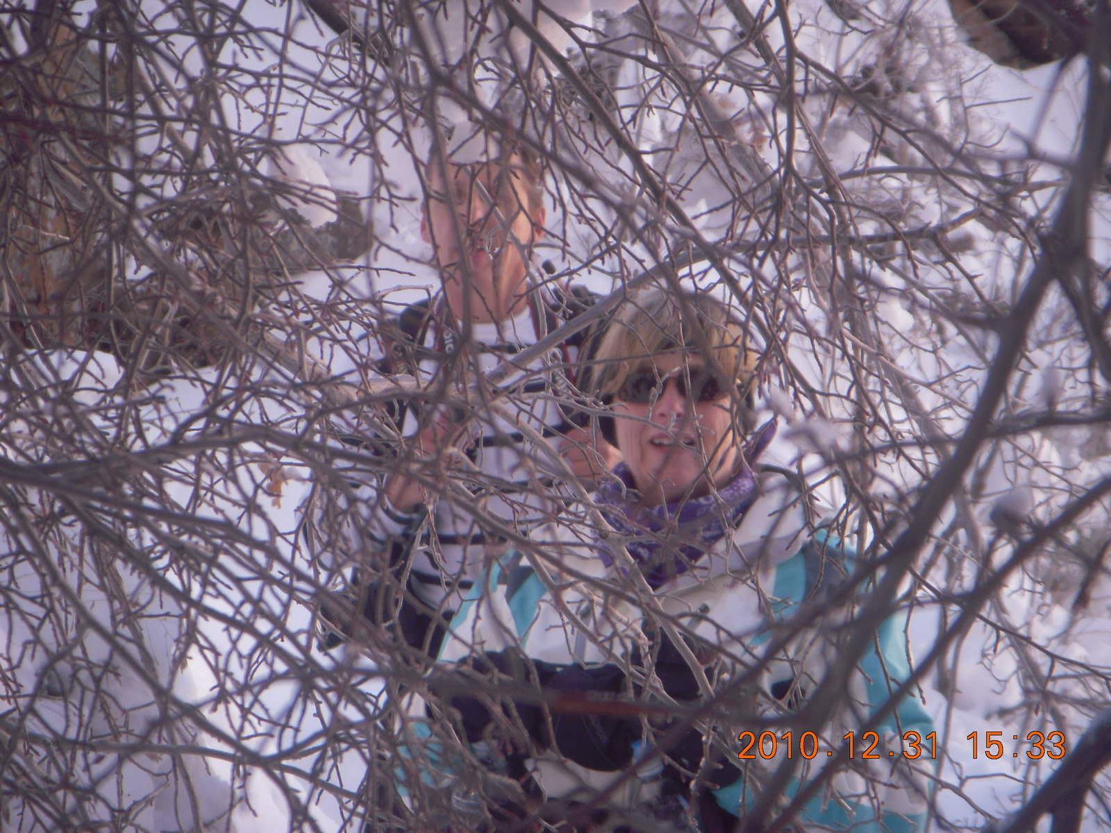 2011 January 13, Thursday, 7fd-olj.jpg * Zion National Park trip - Hidden Canyon hike - Sheri and Luiz behind trees
