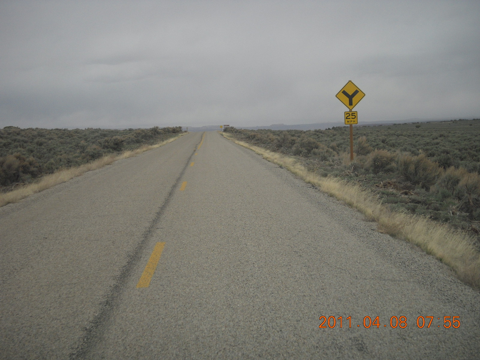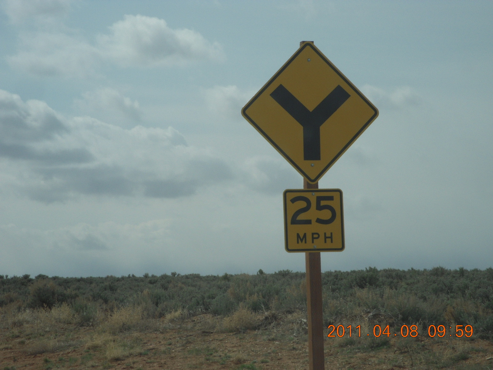2011 April 8, Friday, 7j8-vw1.jpg * dirt road drive from Anticline Overlook - Y sign