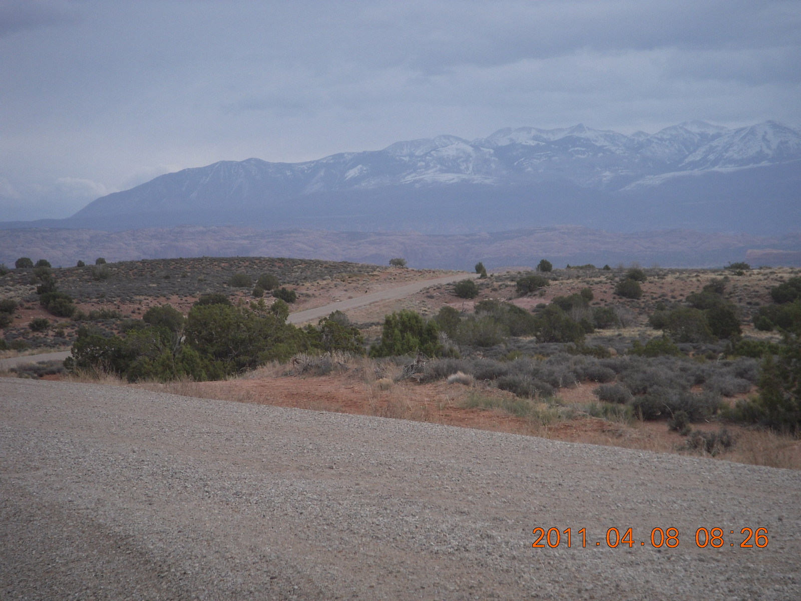 2011 April 8, Friday, 7j8-vtd.jpg * drive south from Moab - La Sal Mountains