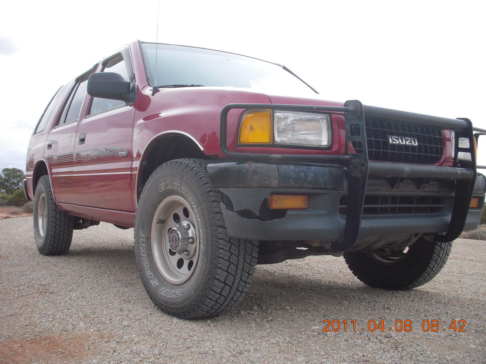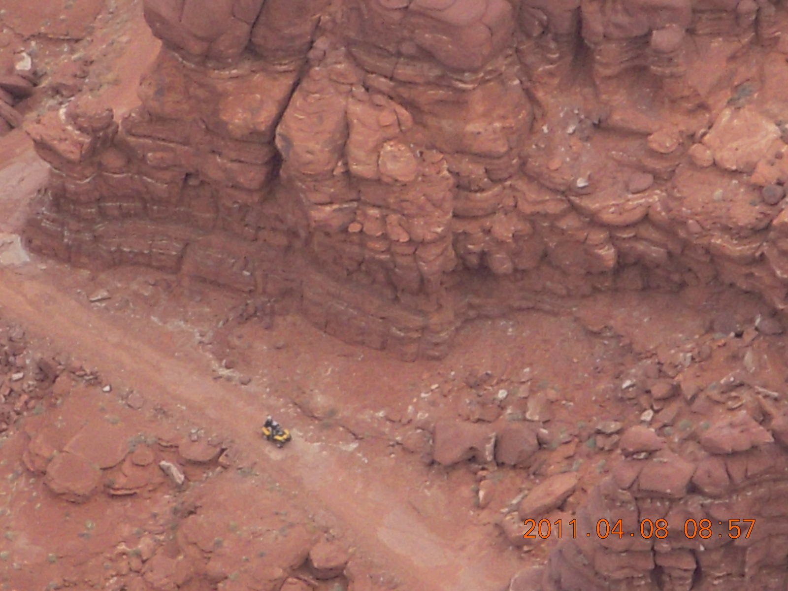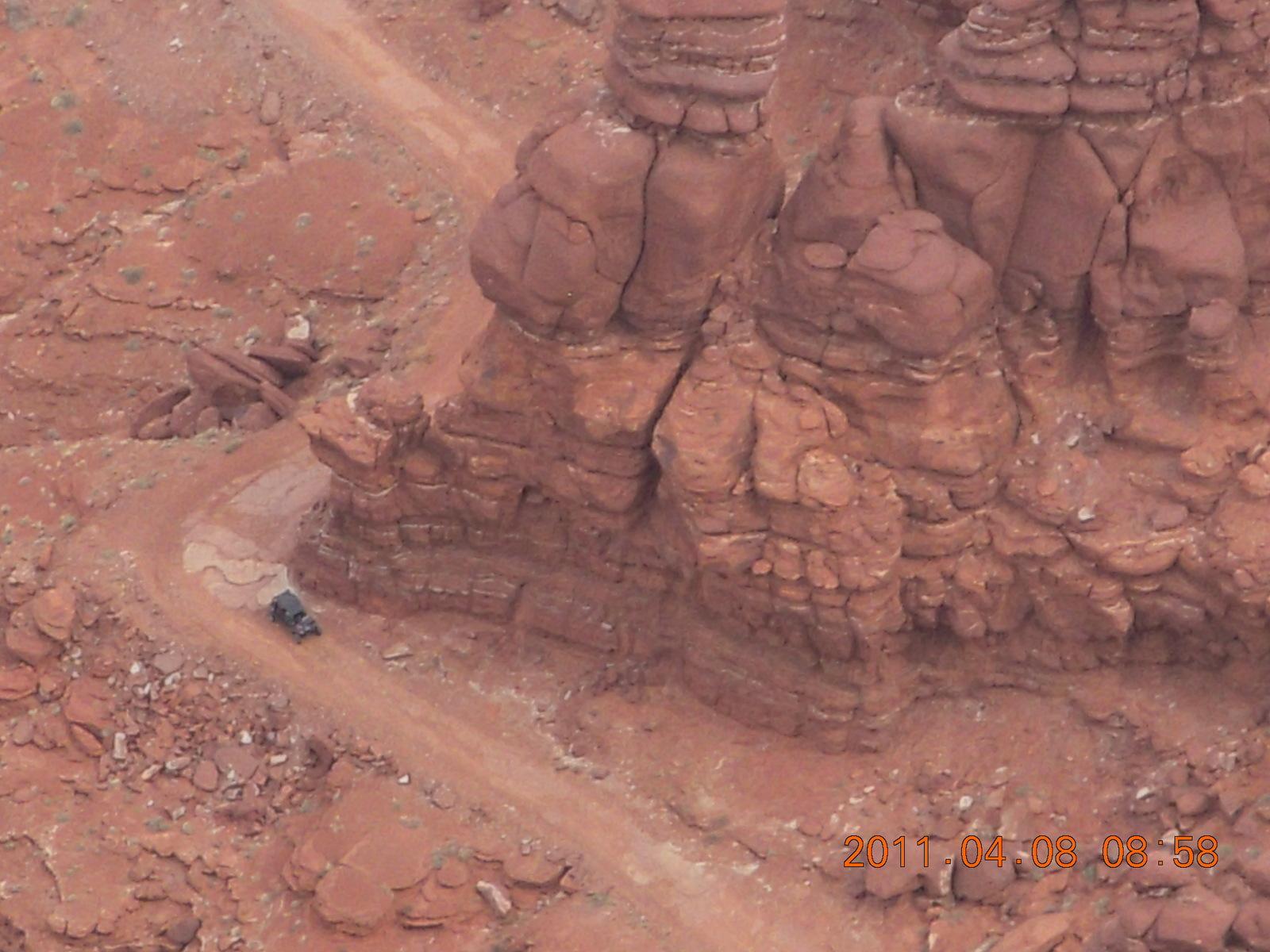 2011 April 8, Friday, 7j8-vtz.jpg * dirt road drive to Anticline Overlook - Rodeo seen from below - looks tough