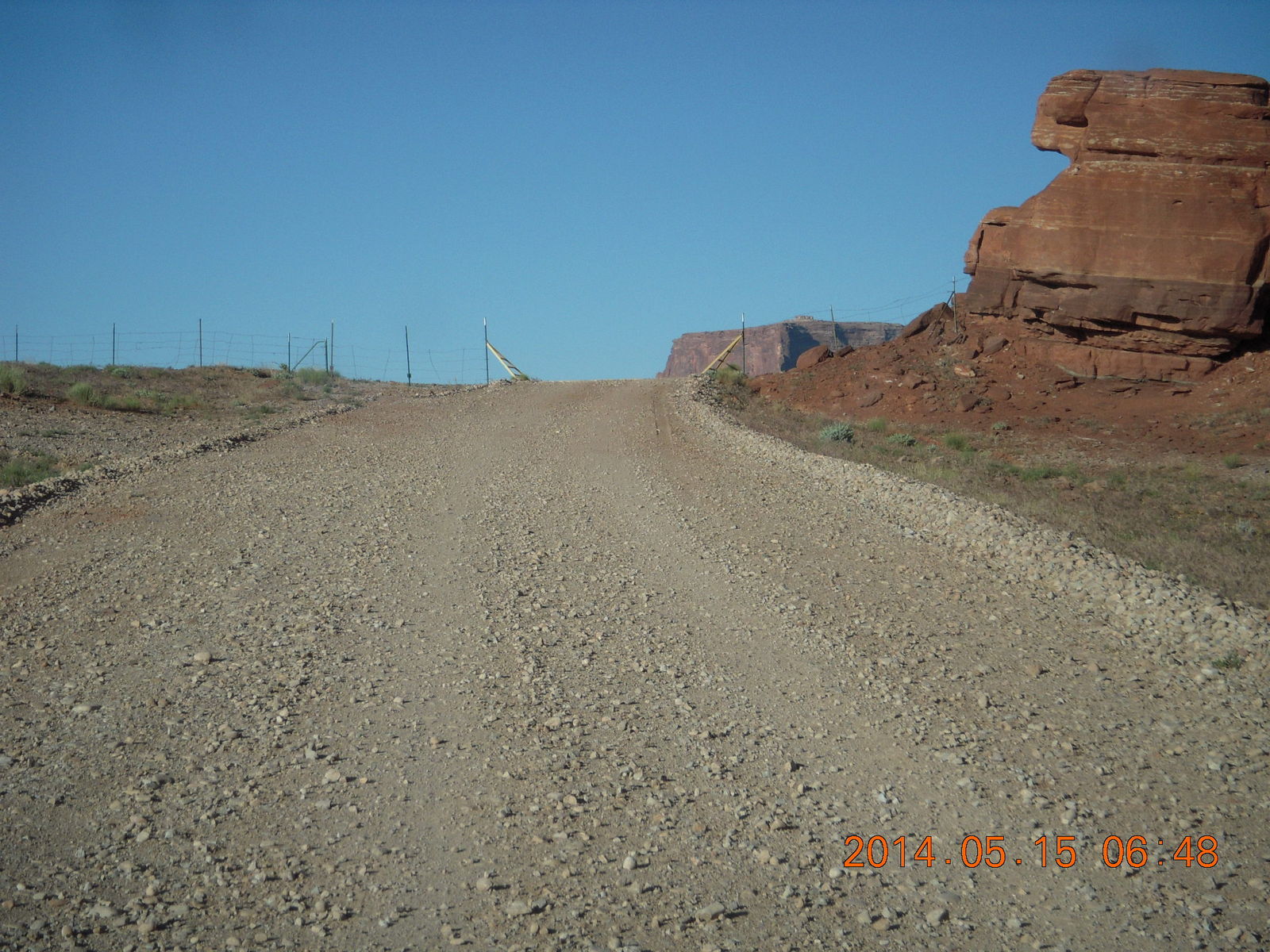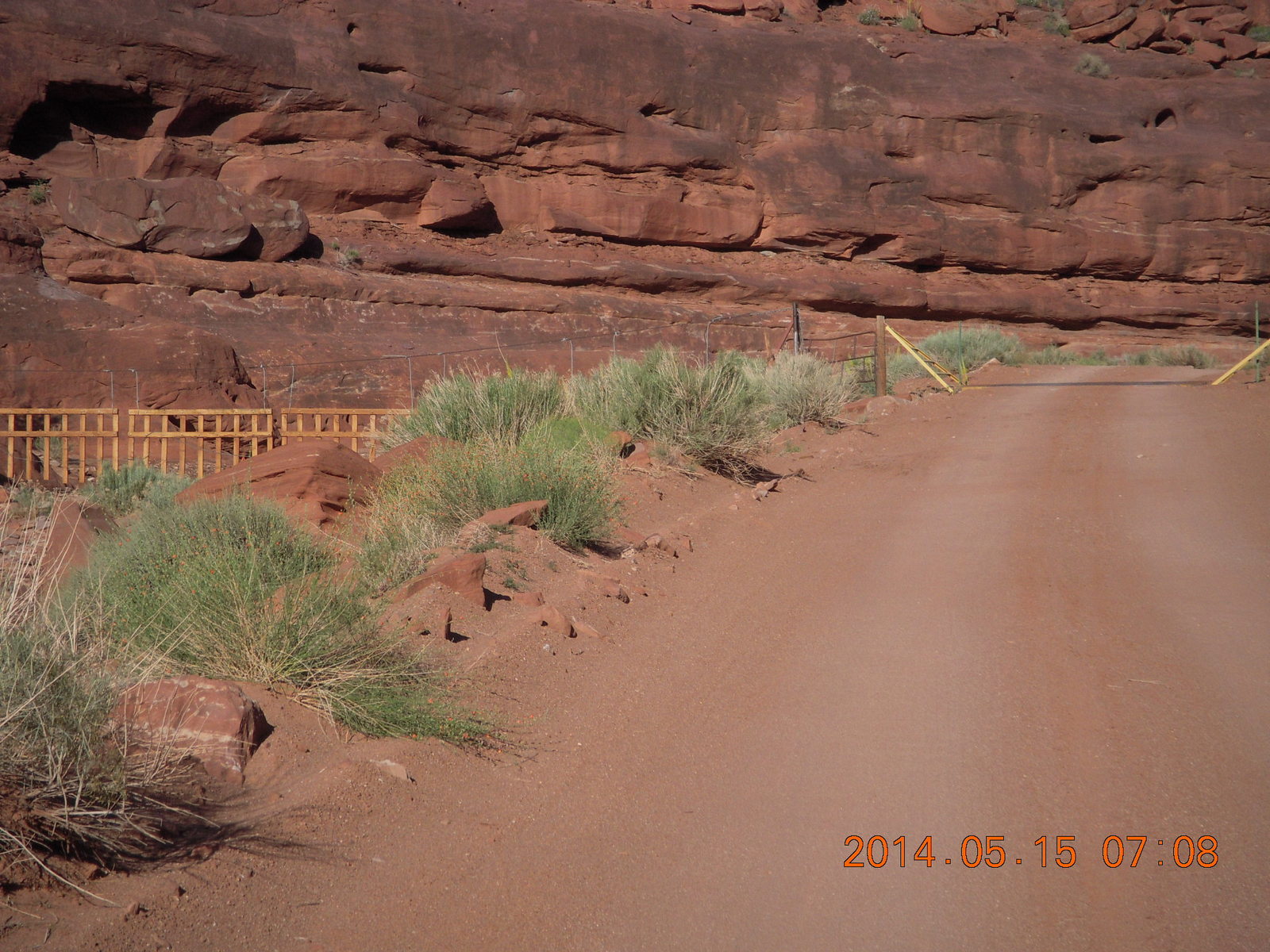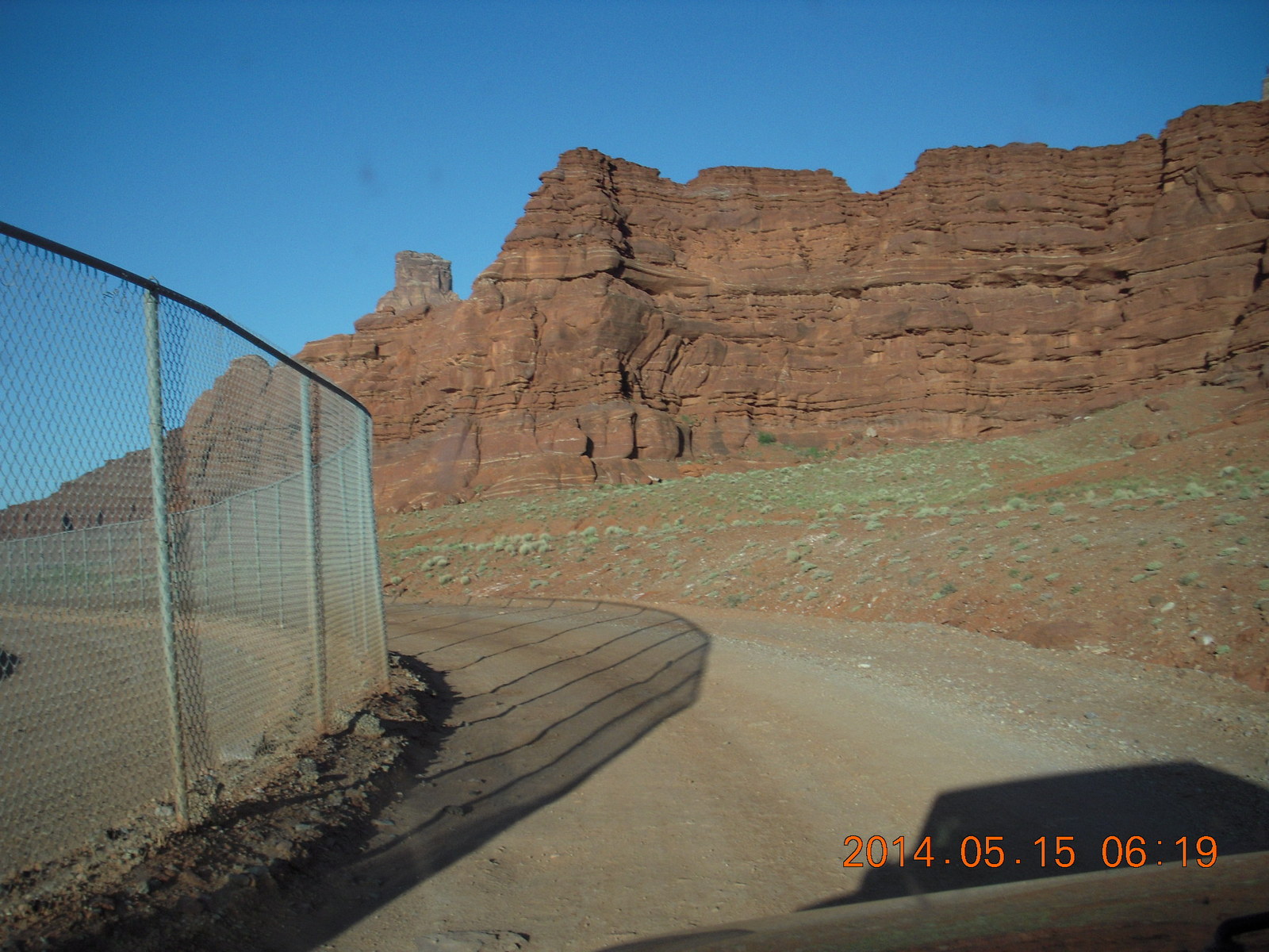 2014 May 16, Friday, 8mg-78w.jpg * Potash Road drive - fence to Canyonlands National Park