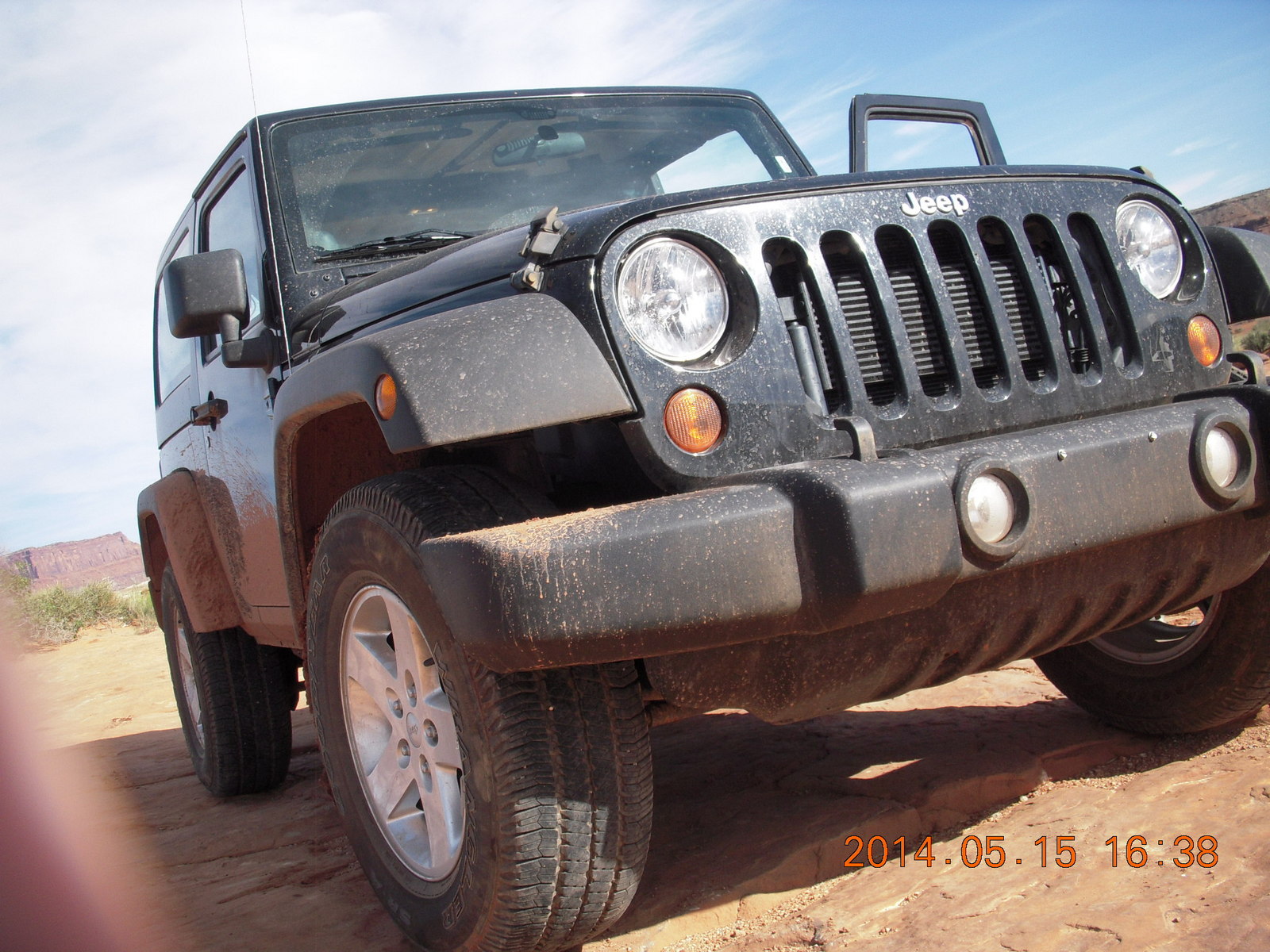 2014 May 16, Friday, 8mg-79w.jpg * White Rim Road - my muddy rental Jeep