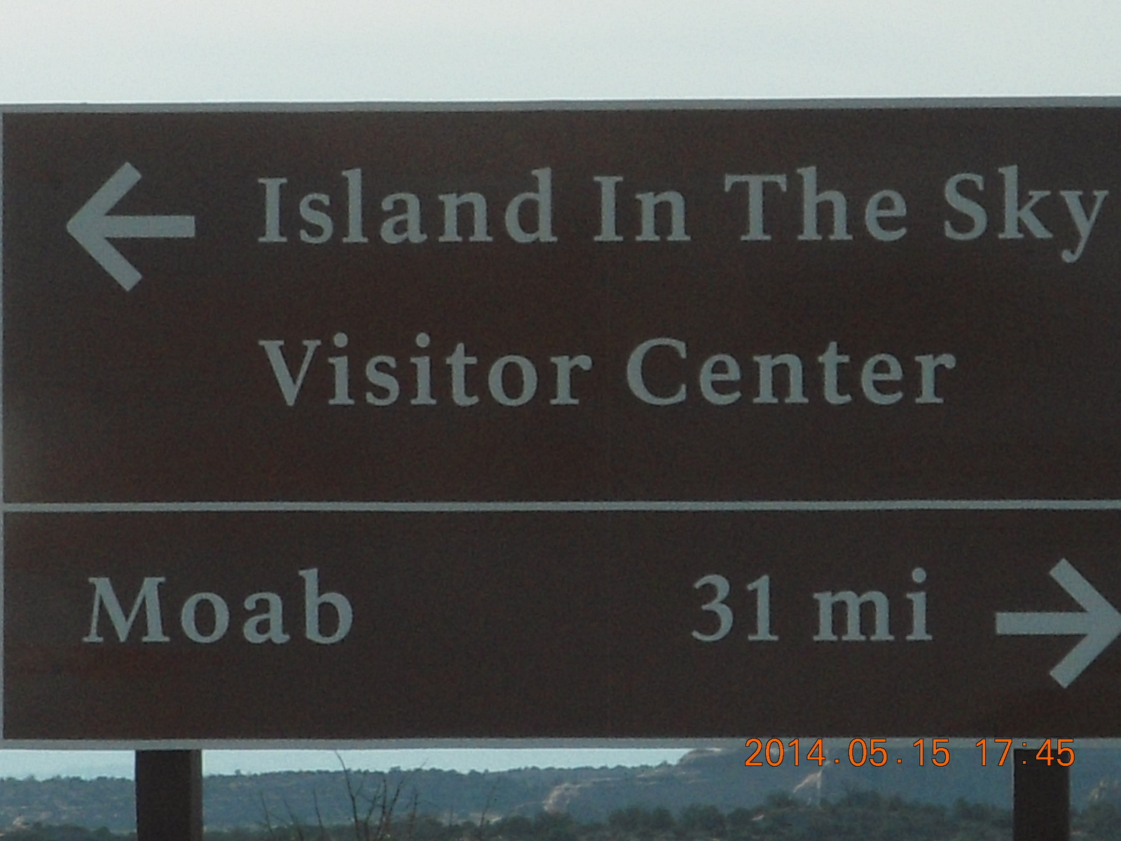 423 8mf. drive back from Canyonlands to Moab - sign in reverse