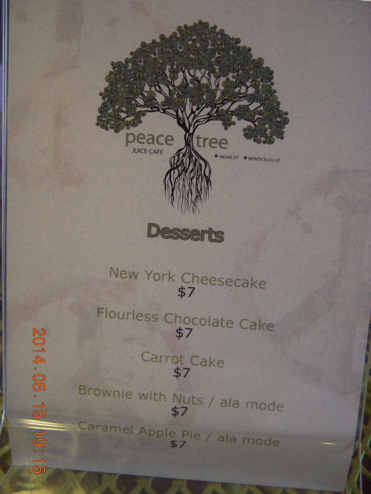 444 8mf. Peace Tree restaurant dessert menu