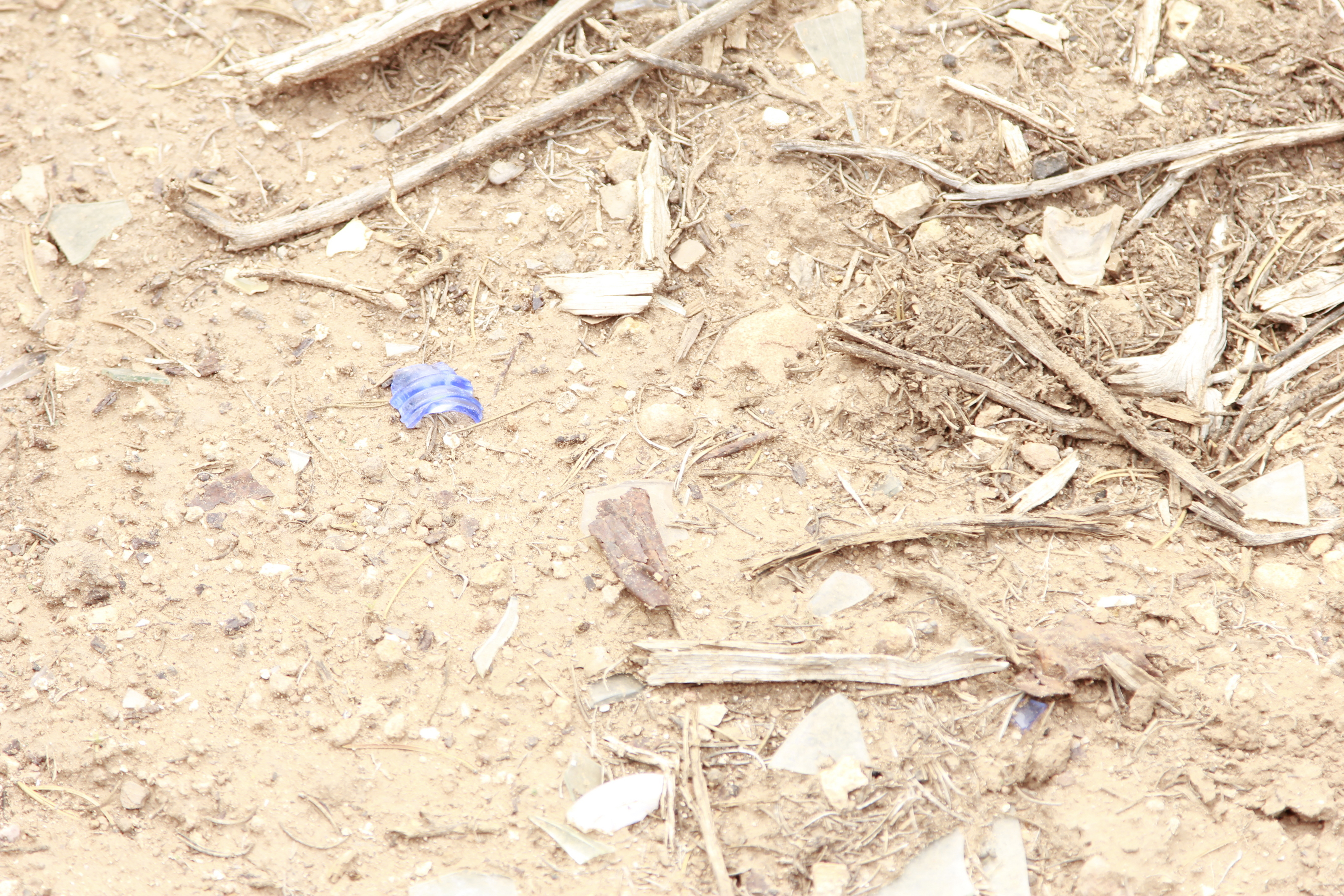 529 8zw. Calamity Mine camp site - blue glass