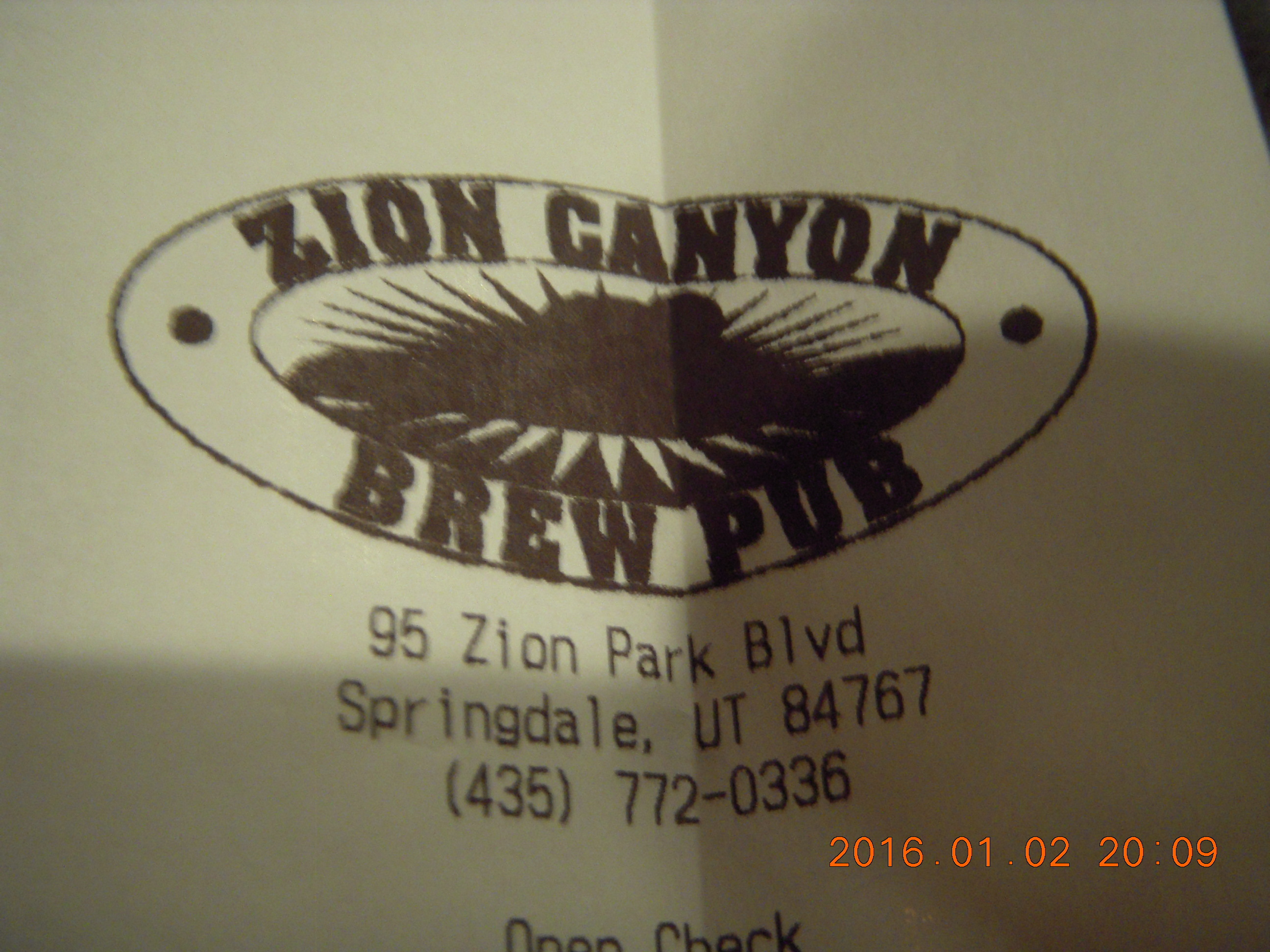2016 January 3, Sunday, 973-rkd.jpg * Zion Canyon Brew Pub receipt