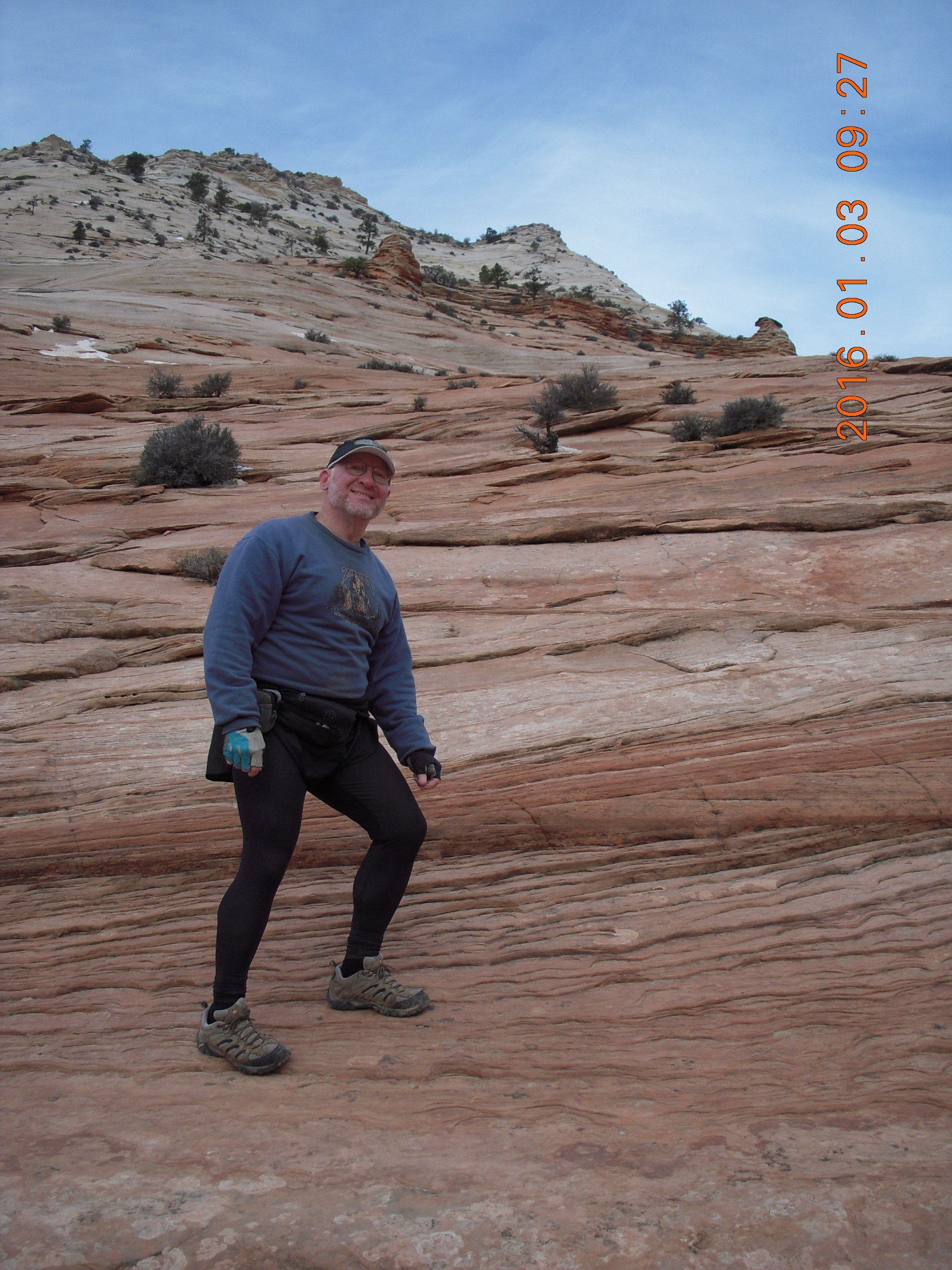 2016 January 3, Sunday, 973-rke.jpg * Zion National Park - Adam with sweatshirt tied around waist