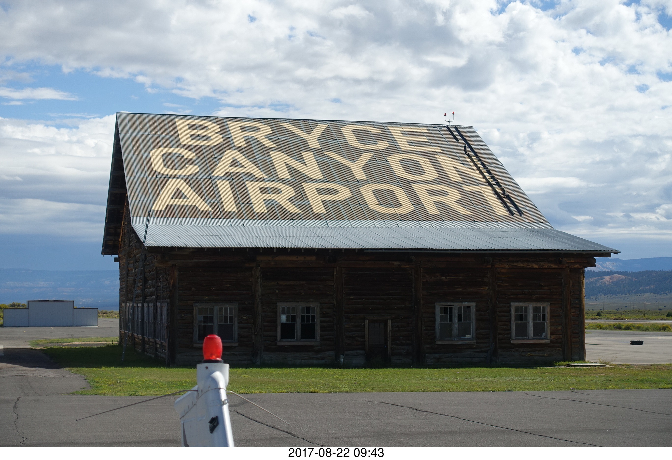2017 August 22, Tuesday, 9sn-qjo.jpg * Bryce Canyon Airport log cabin