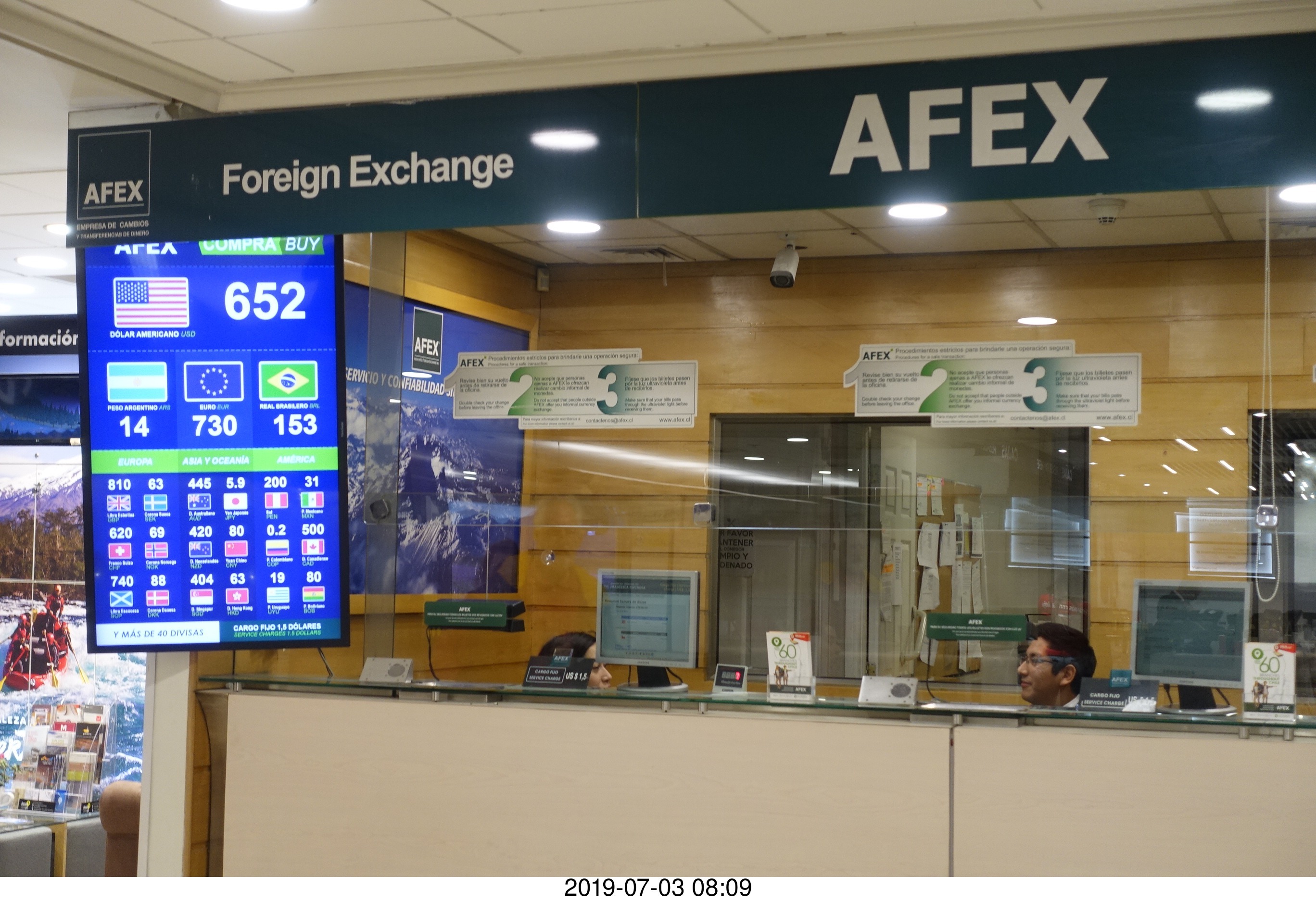 2019 July 3, Wednesday, af3-y22.jpg * Chile - Santiago Airport - exchange rates for Chile