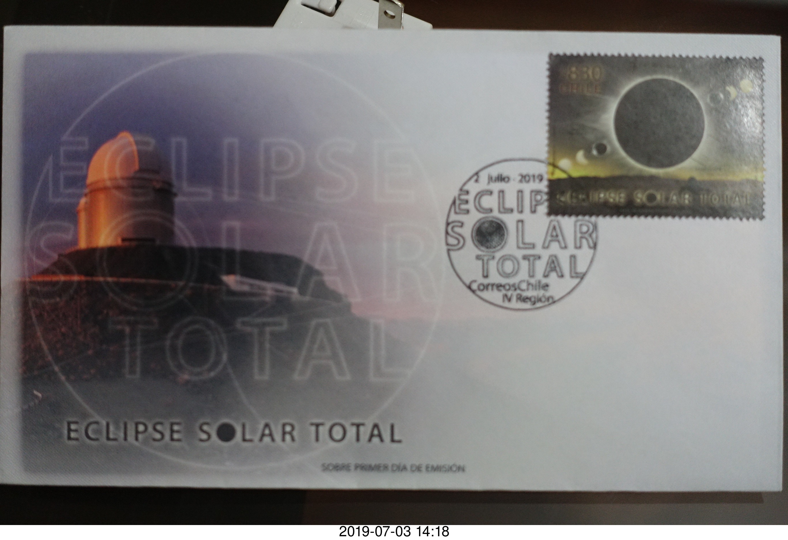 190 a0f. Chile - Santiago tour - first day of issue solar eclipse stamp