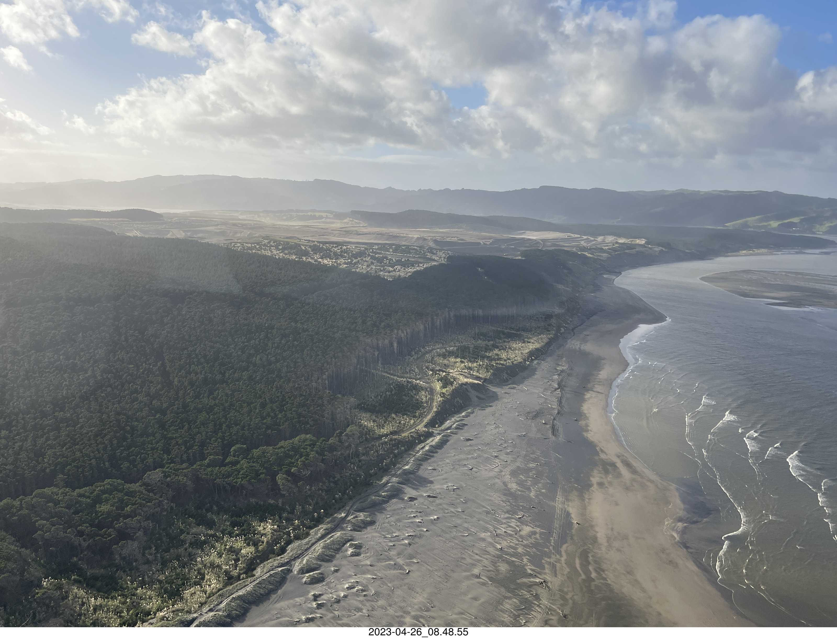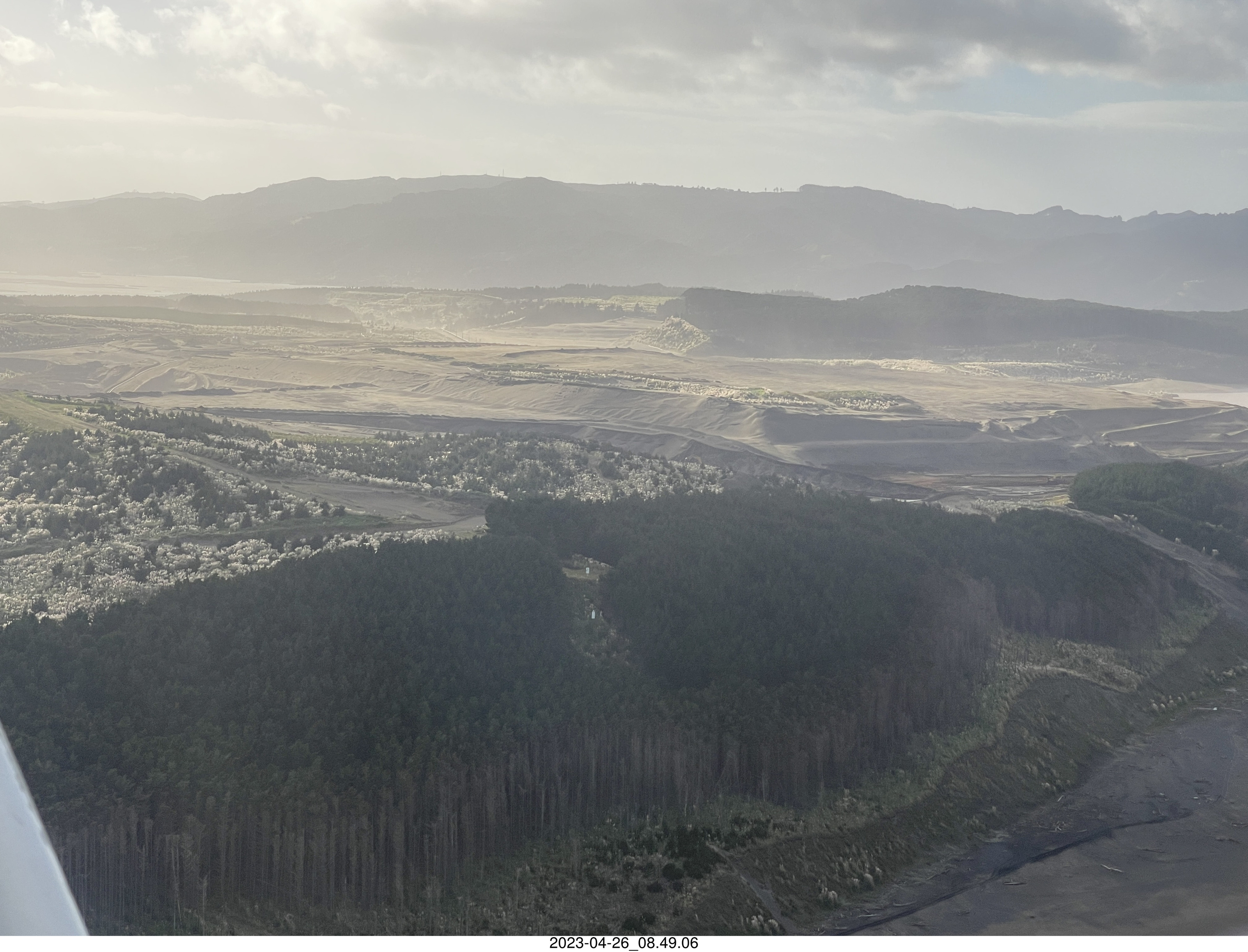 2023 April 27, Thursday, bst-mhk.jpg * New Zealand - Ardmore Airport Flying School - aerial beach - sand mountains