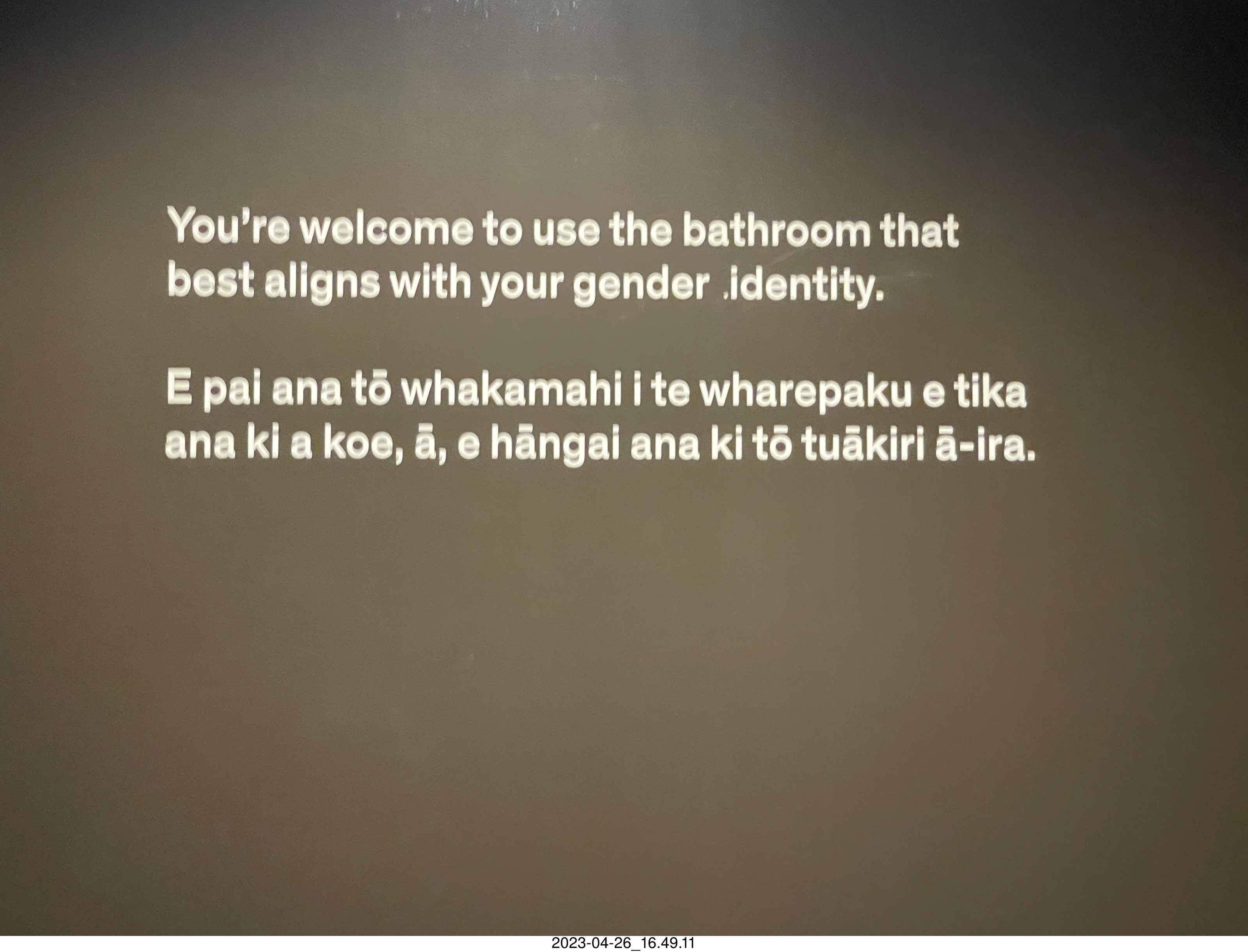 296 a1s. New Zealand - Auckland Art Museum - trans bathroom sign in two languages