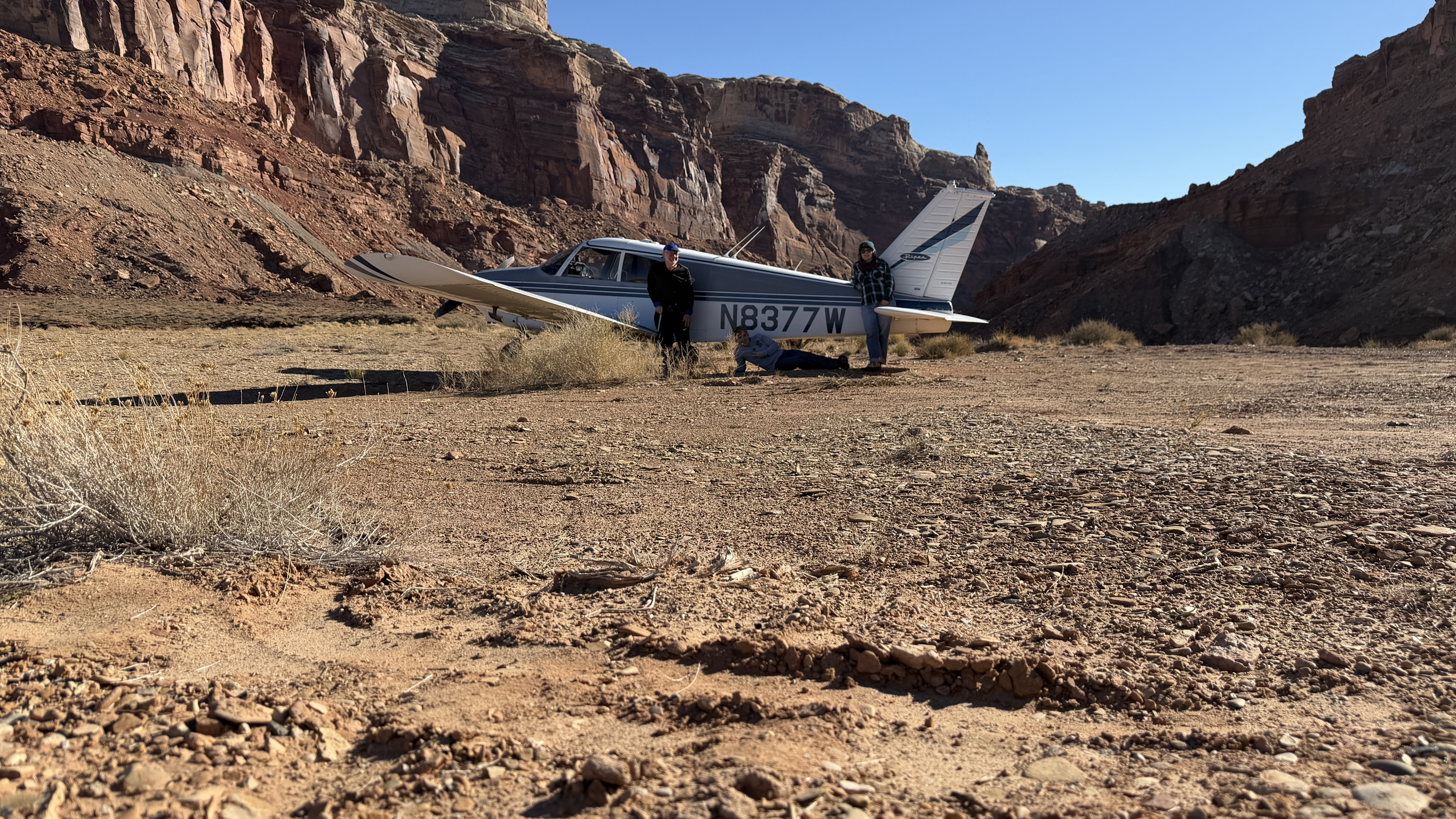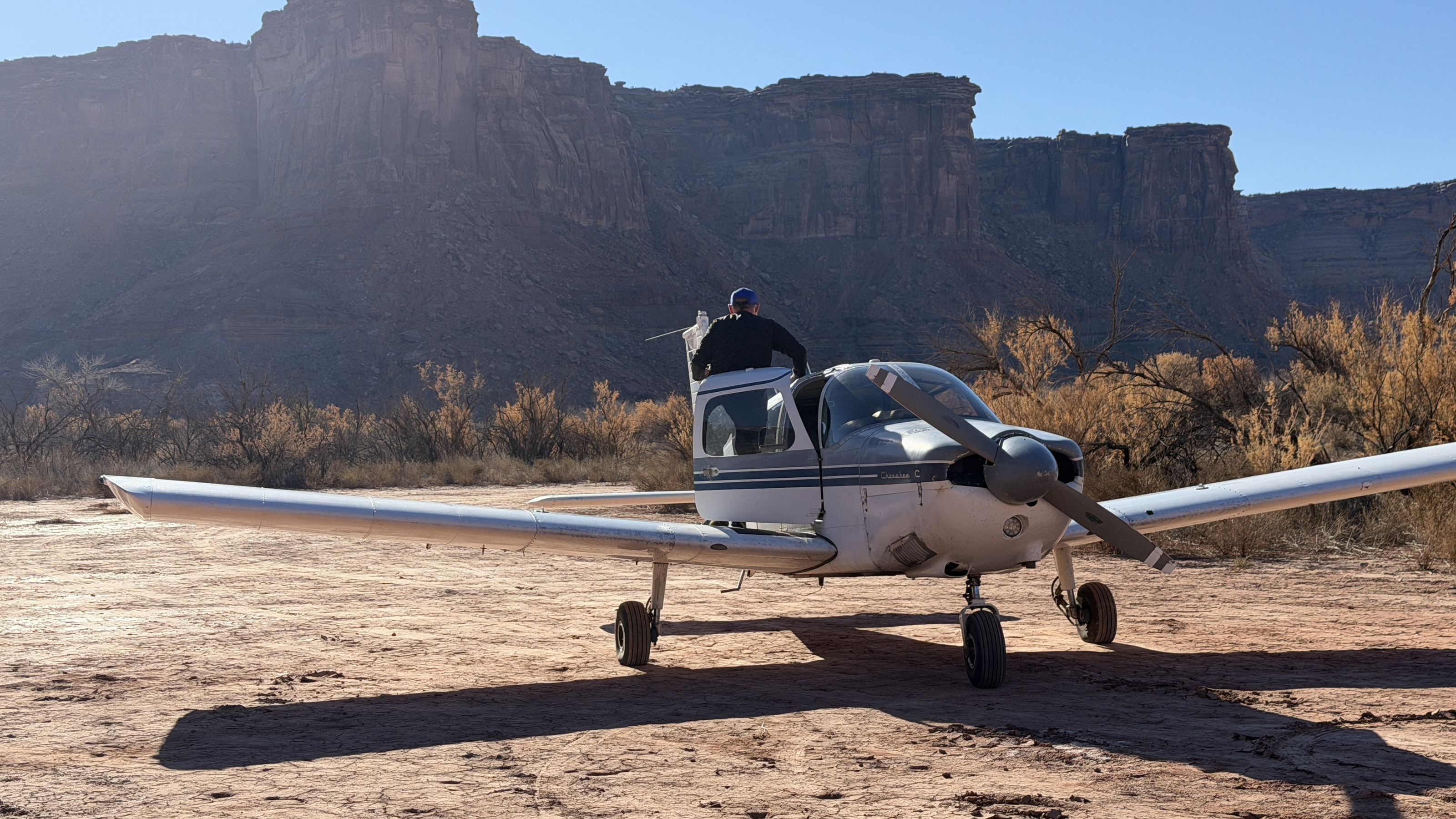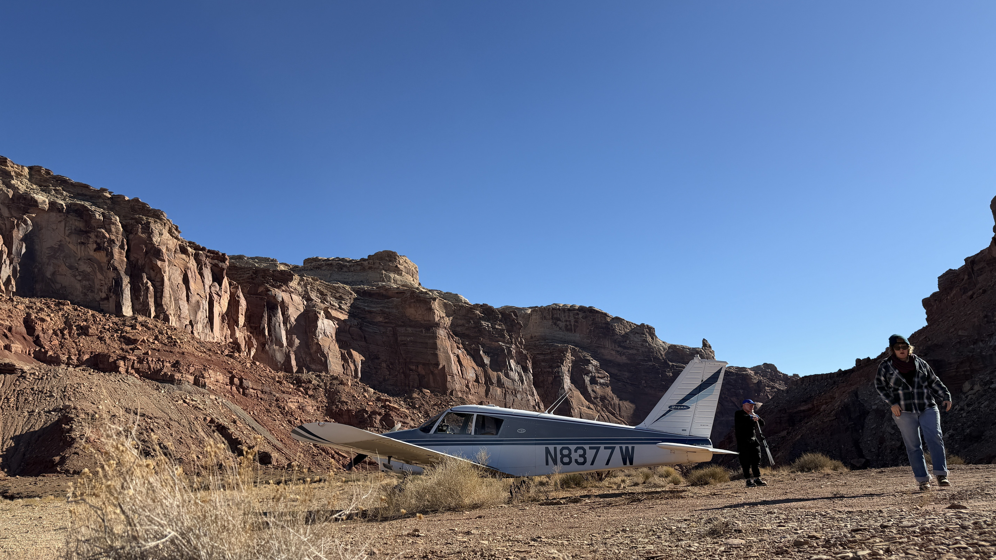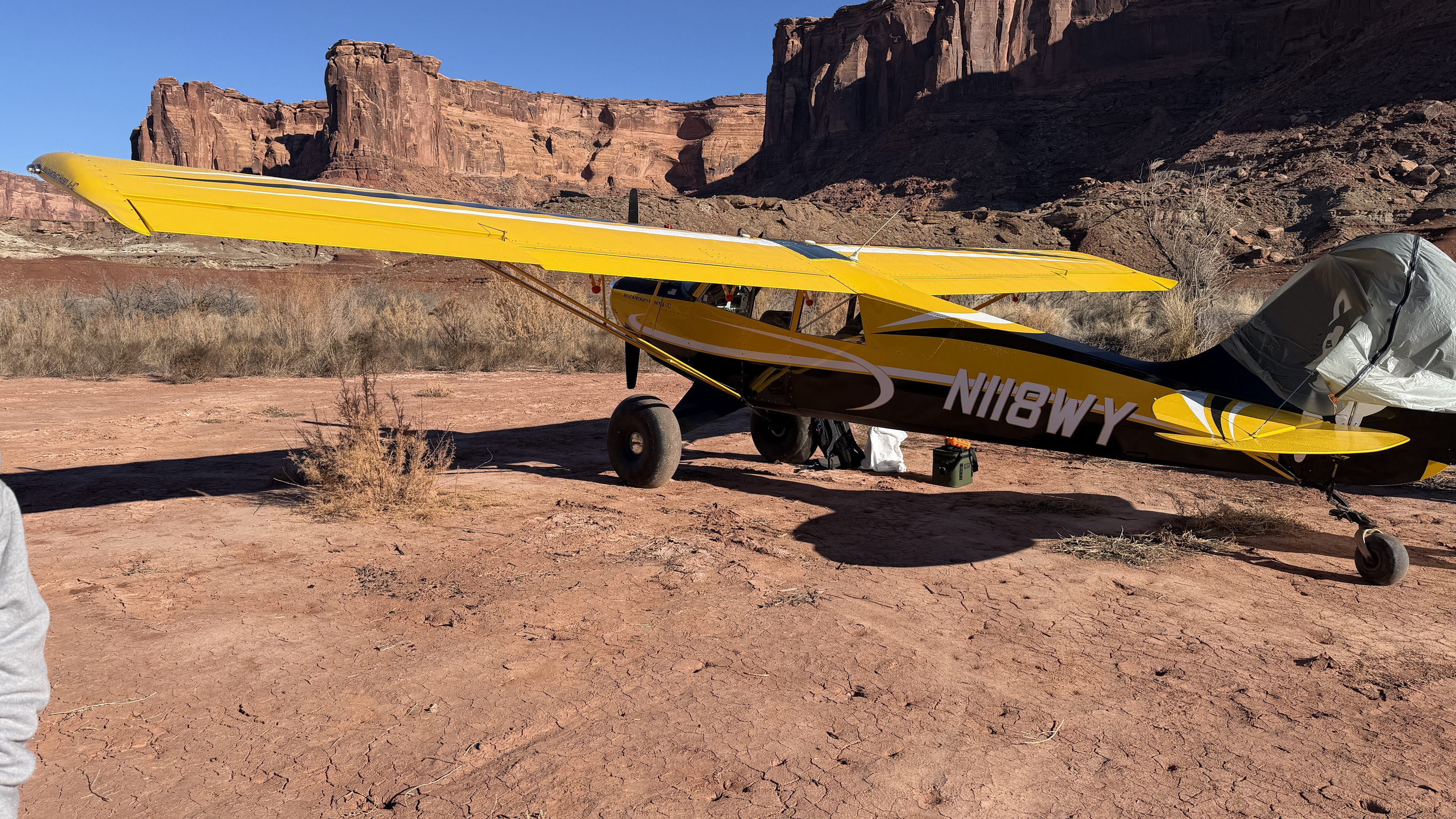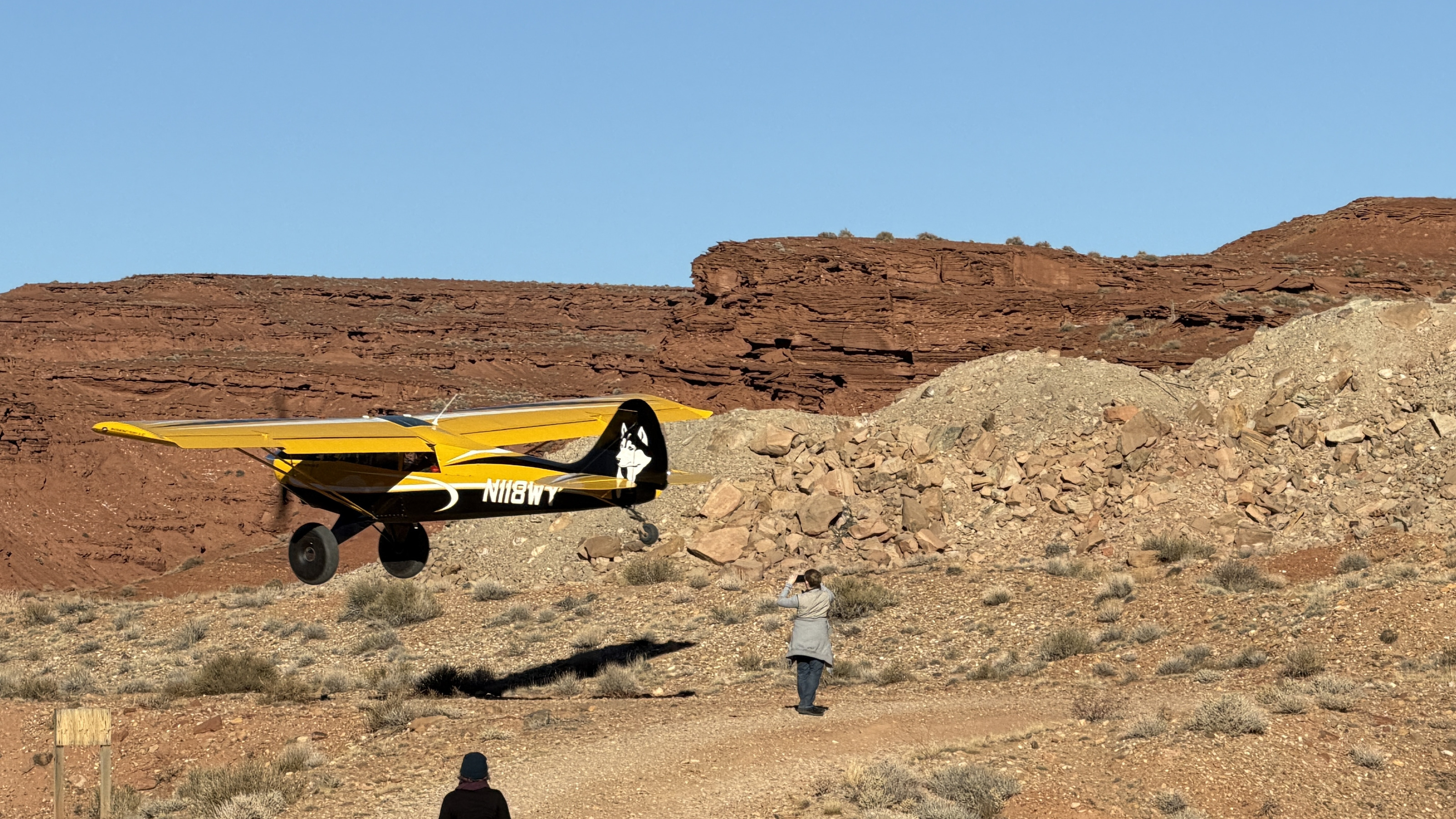 2025 December 13, Saturday, cqd-ane.jpg * Utah - Mineral Canyon airstrip - yellow Husky NII8WY pilot and Tyler