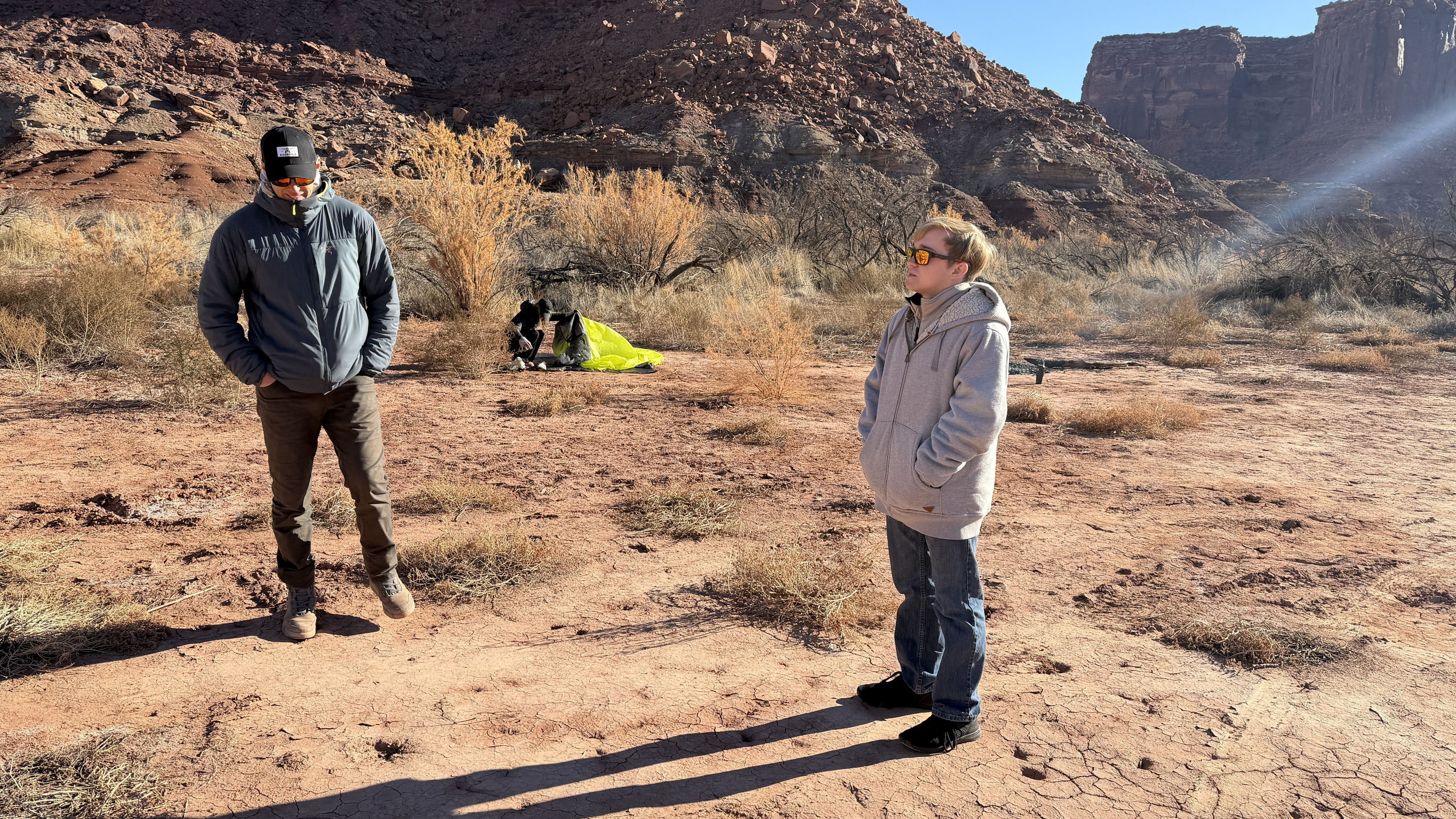 2025 December 13, Saturday, cqd-and.jpg * Utah - Mineral Canyon airstrip - yellow Husky NII8WY pilot and Tyler