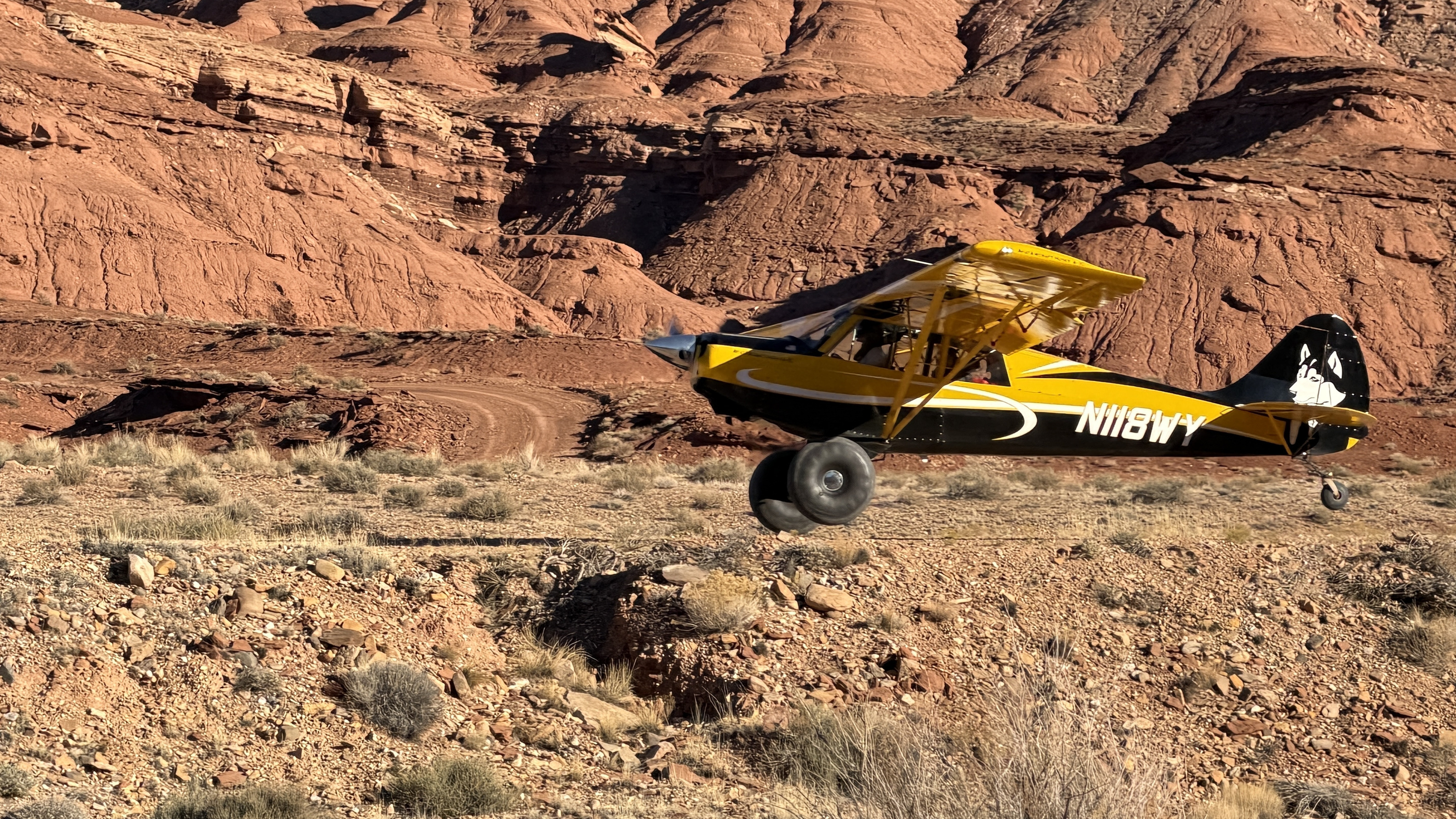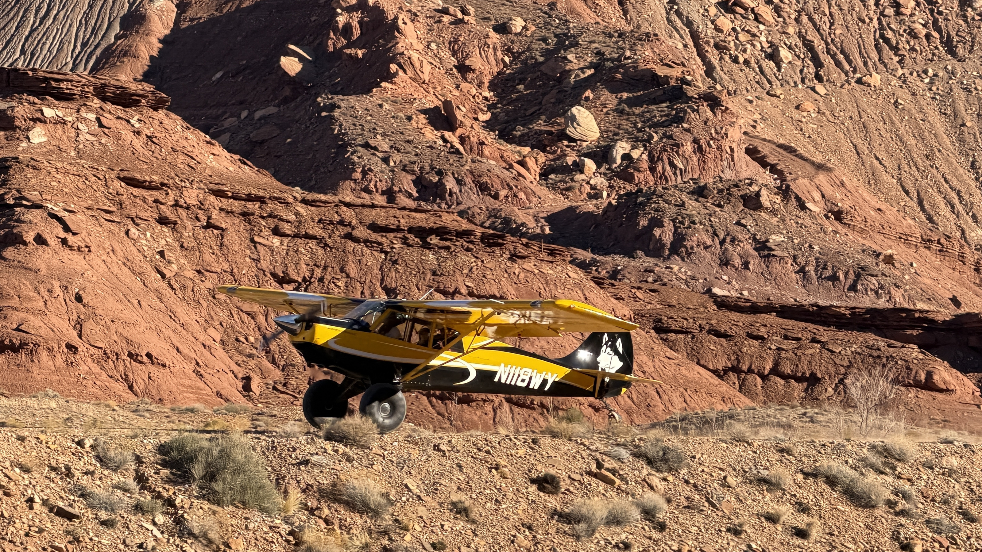 2025 December 13, Saturday, cqd-anb.jpg * * Utah - Mineral Canyon airstrip - yellow Husky NII8WY